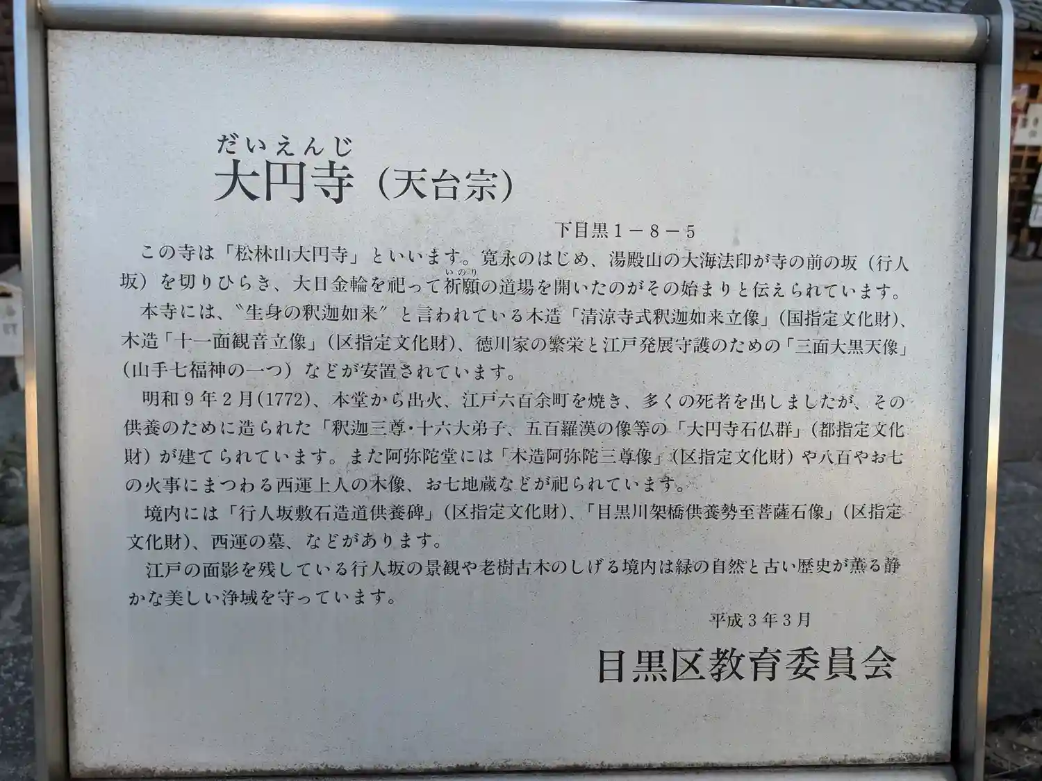 目黒駅脇の行人坂途中にありますが、この坂の勾配がかなりきつい!このお寺の石仏群もすごいのですが、特…