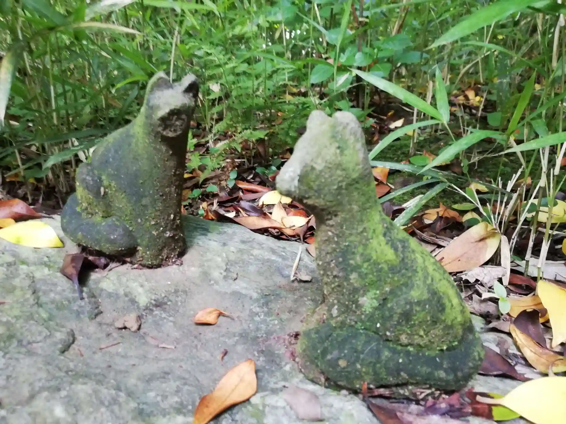 お狐様の苔生した磐肌が良いです
