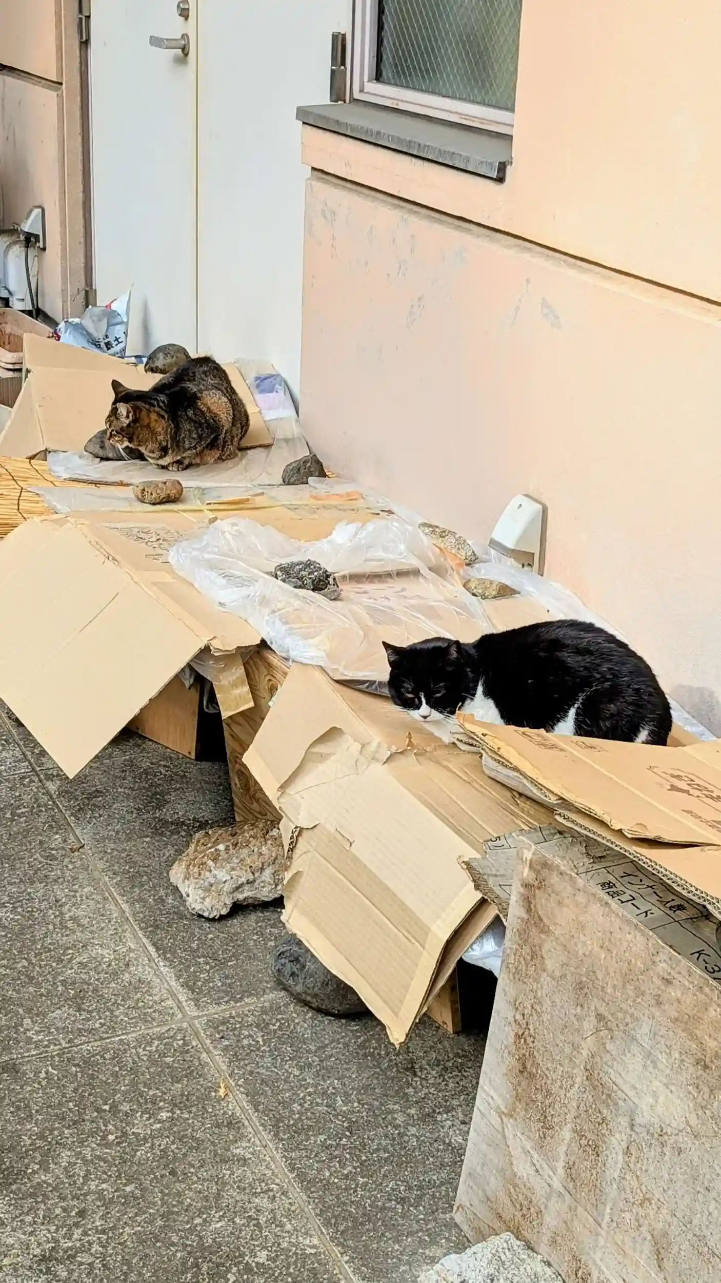 段ボールハウスの上でお昼寝中💤