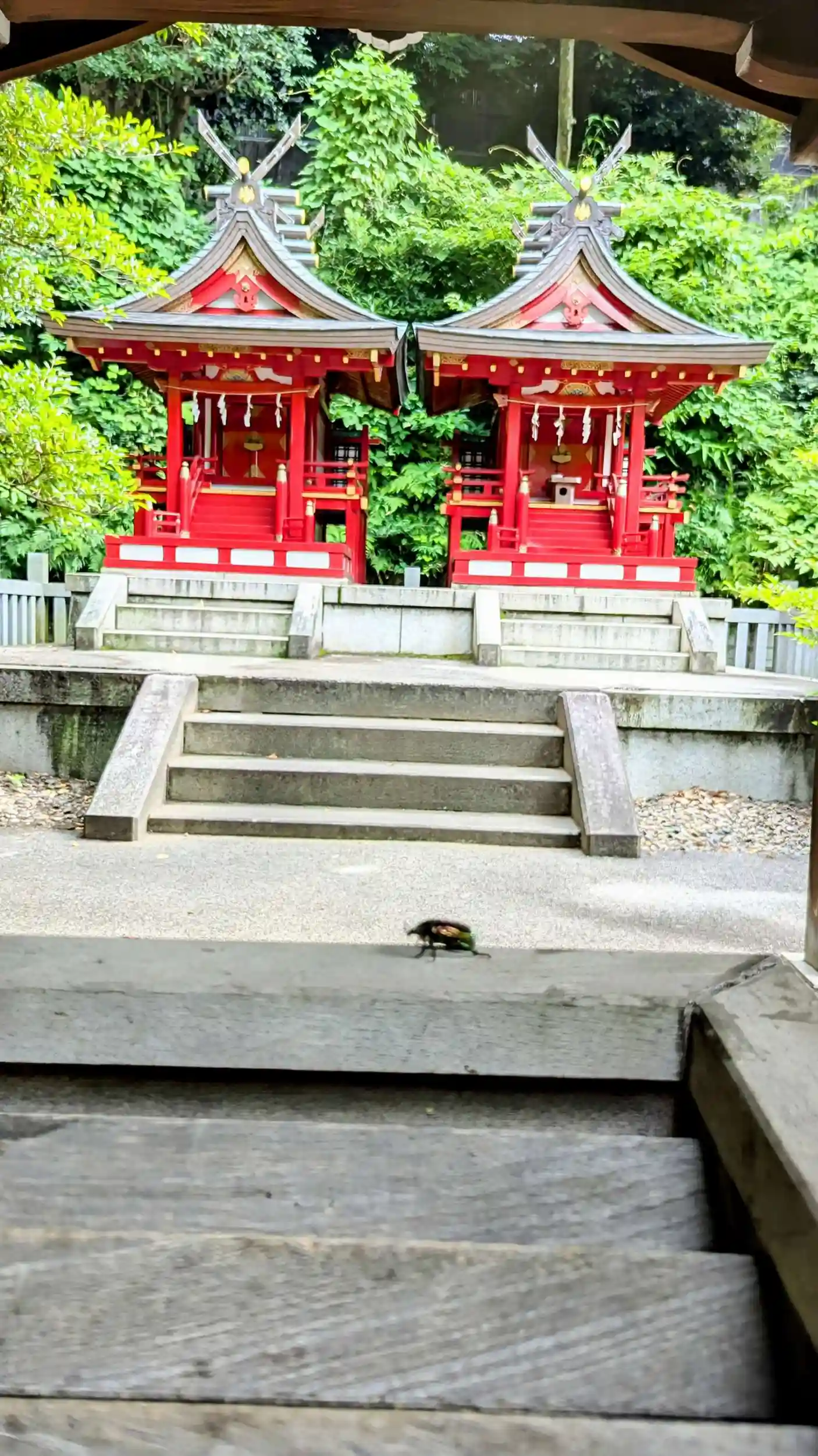 お賽銭箱の上をカナブンが歩いていたので一緒にパシャリ📸