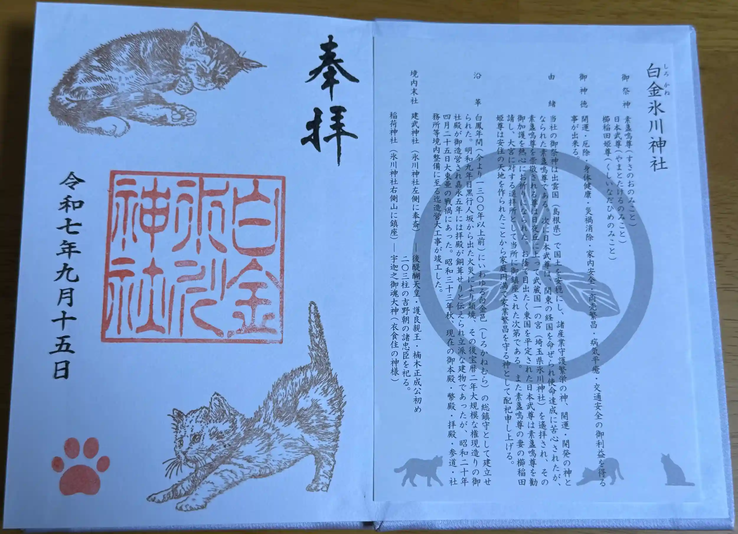 白金氷川神社に参拝し、猫の御朱帳を拝受。