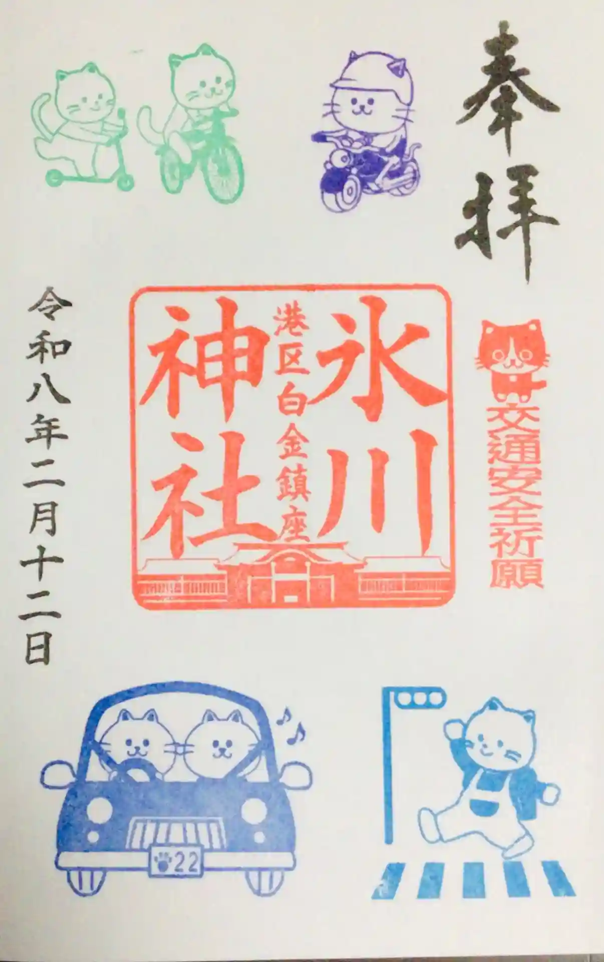 今月の2種類の御朱印のほか、通年の交通安全御朱印が若干ニャンコのハンコに変更があり…そちらもお願いしました。