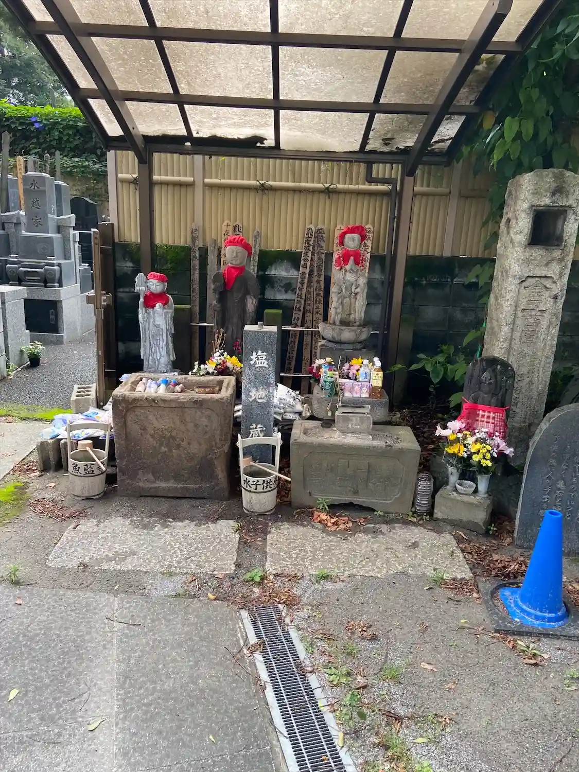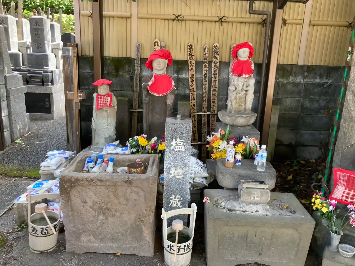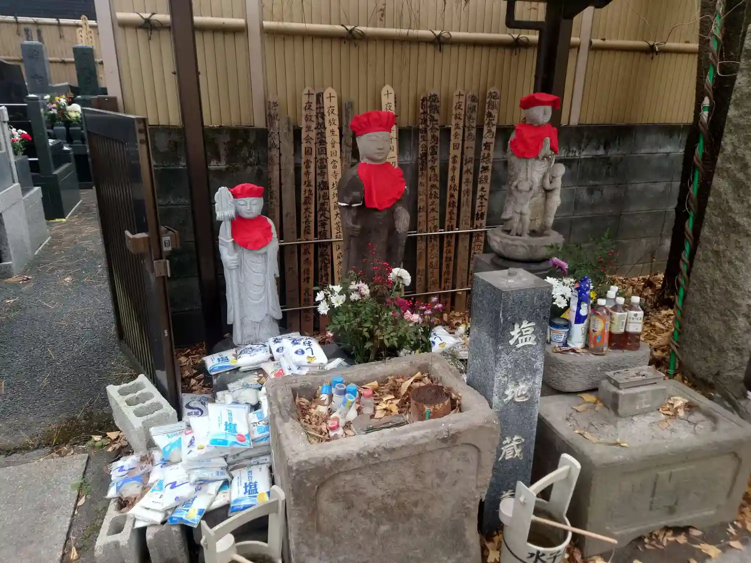 境内に塩が大量に供えられている地蔵は、「塩地蔵」と呼ばれています。