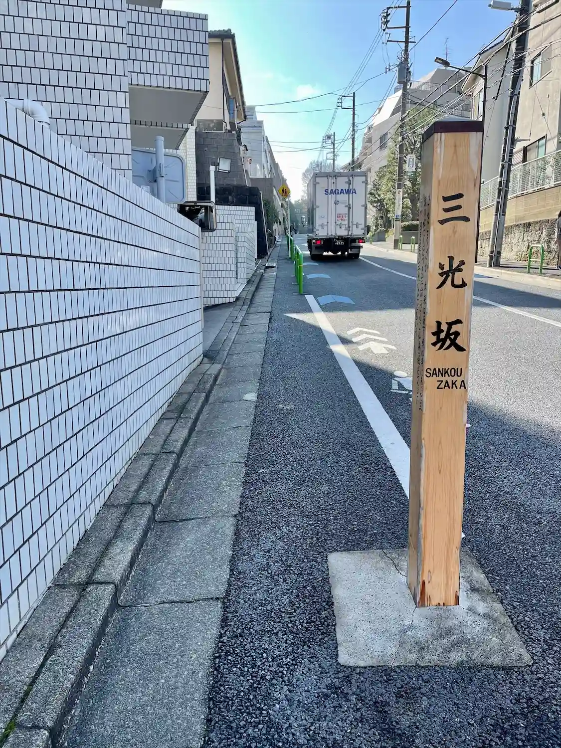 徳川三代将軍家光が鷹狩りの際、当寺に立ち寄り、当寺の松を三葉松と名付けたことにより、当寺前の坂を三葉坂(三鈷坂)、当町会名を三光町と称すようになったと伝わる。
