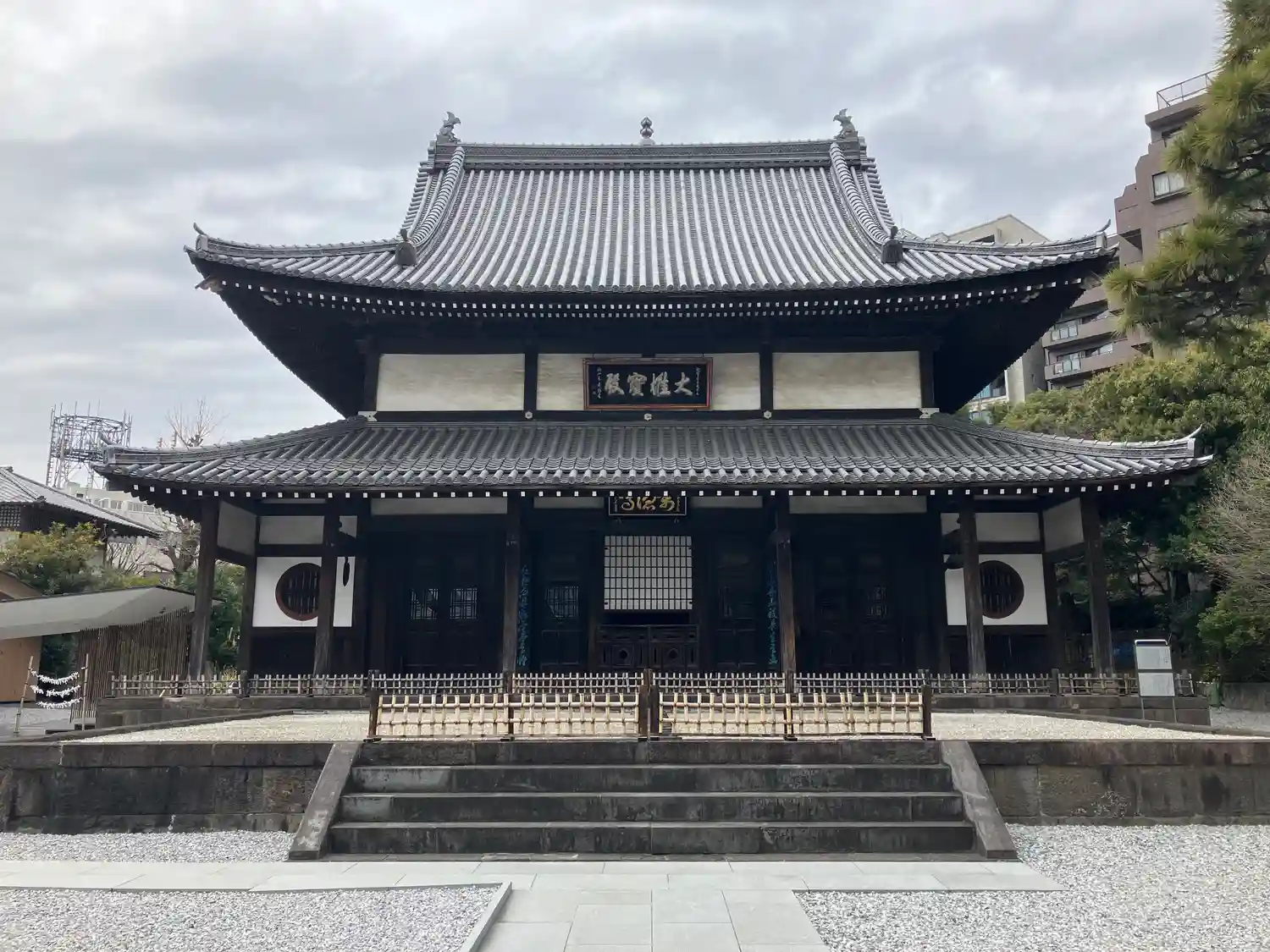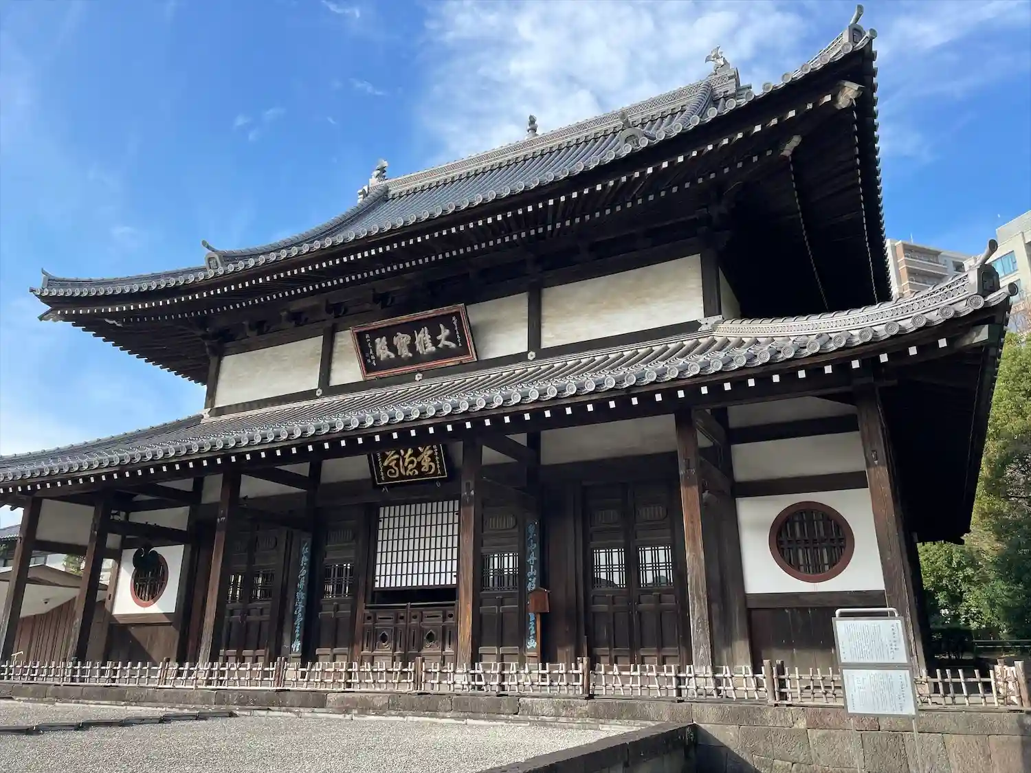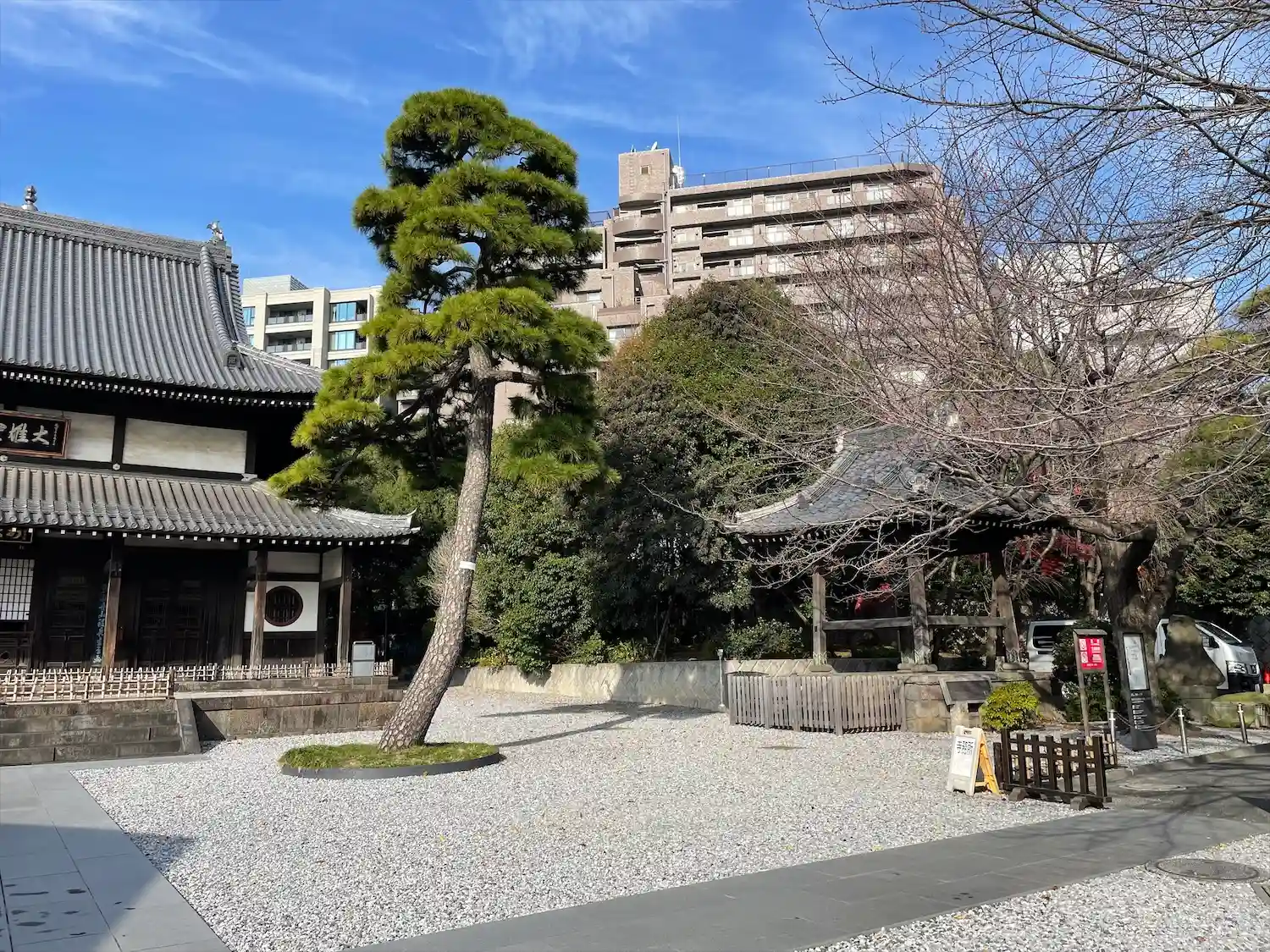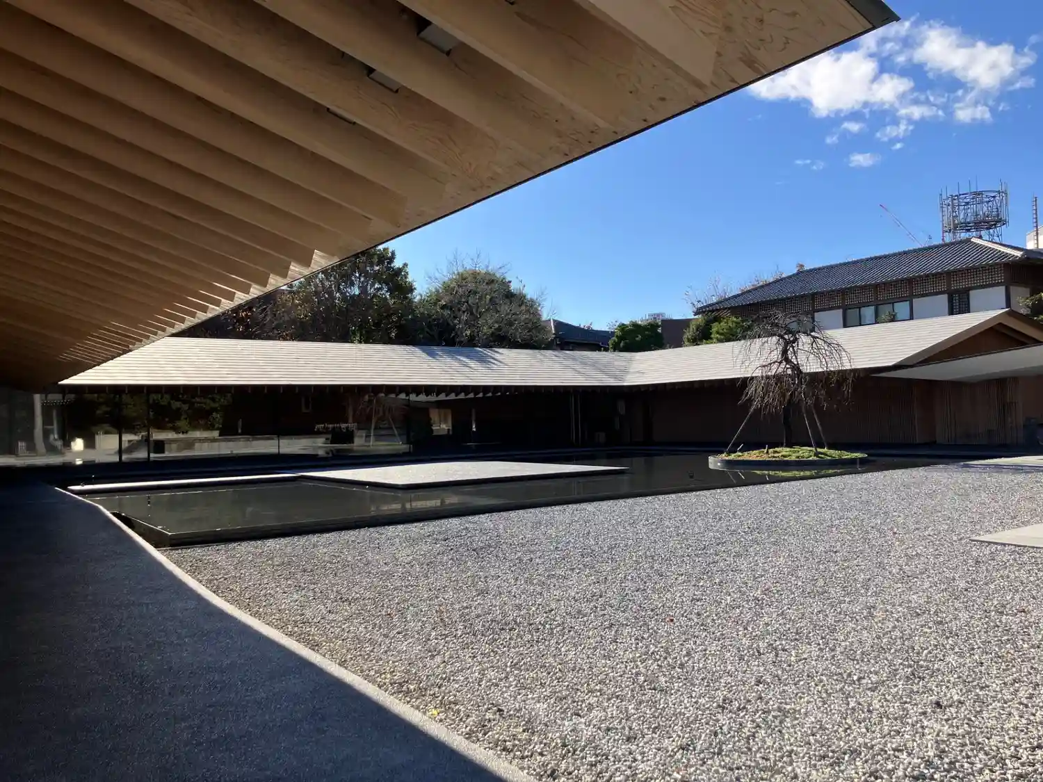 境内に入ると、お寺とは思えないスタイリッシュさがありました。調べたところ、本堂左の建物(庫裡)は隈…