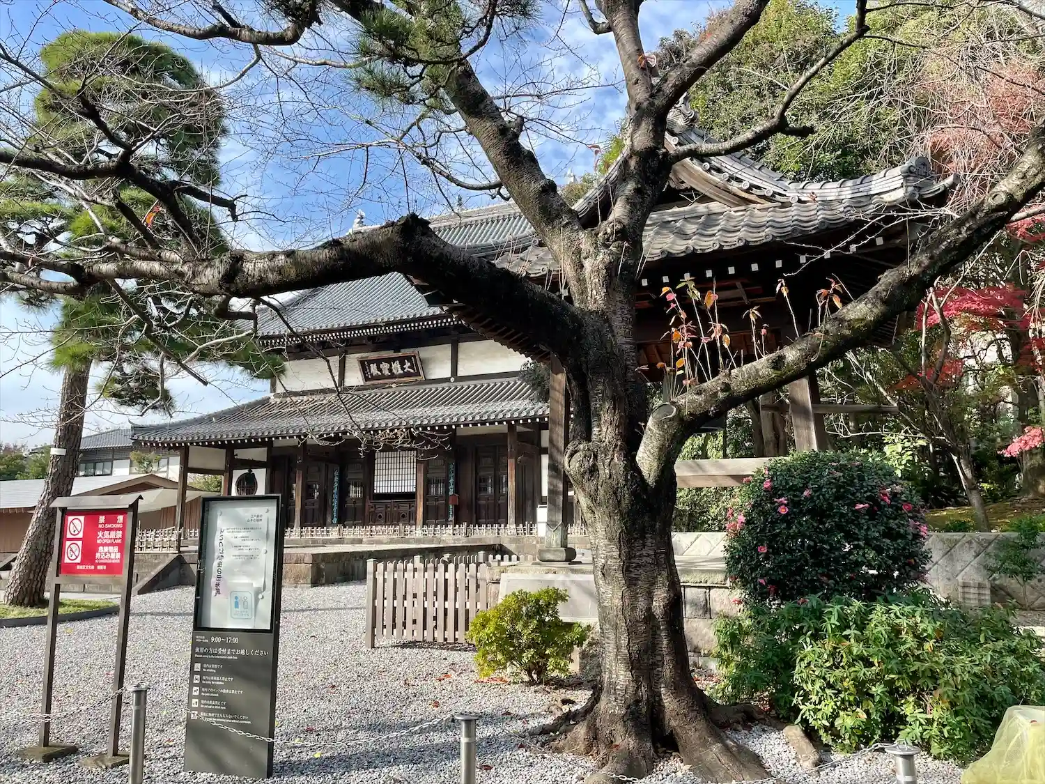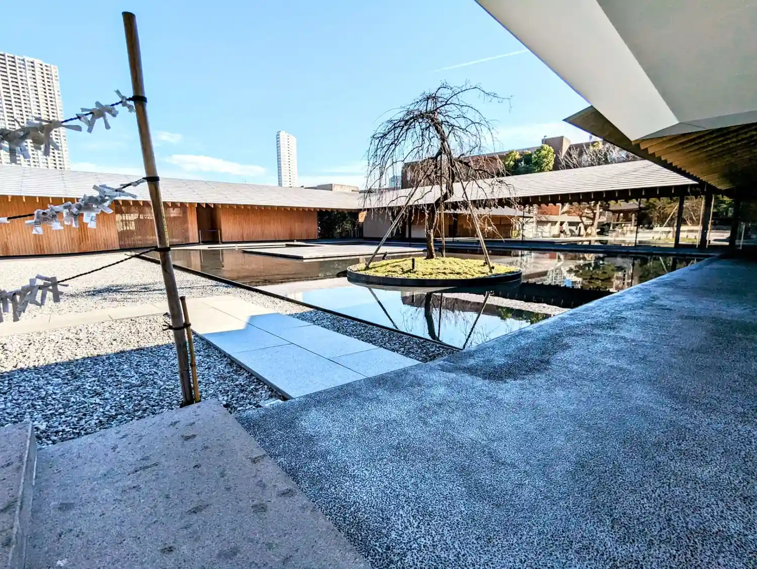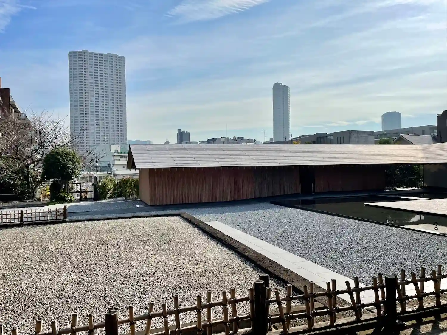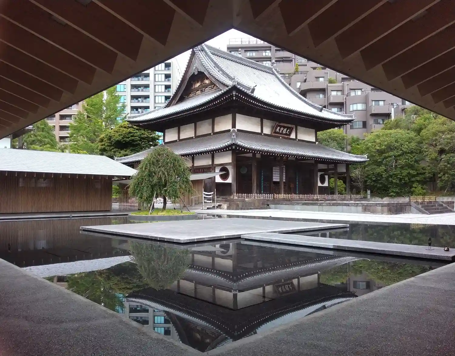 境内に入ると、お寺とは思えないスタイリッシュさがありました。調べたところ、本堂左の建物(庫裡)は隈…