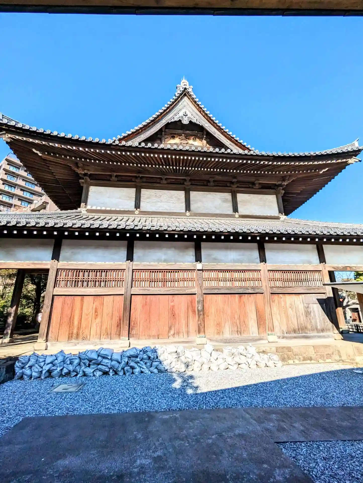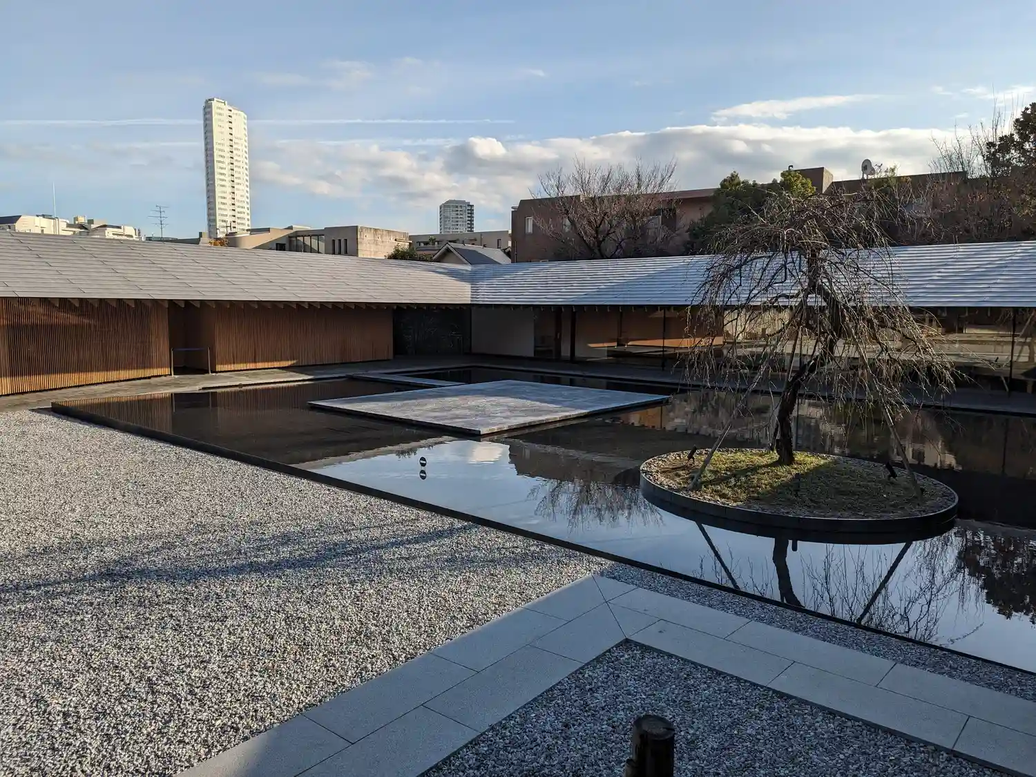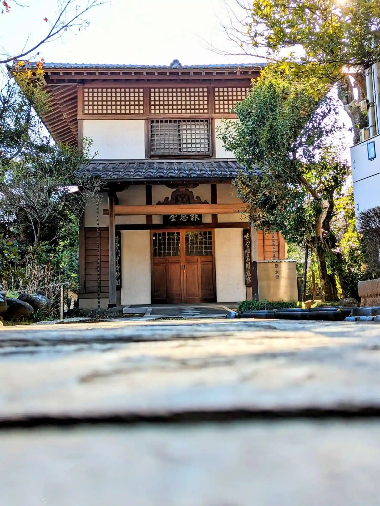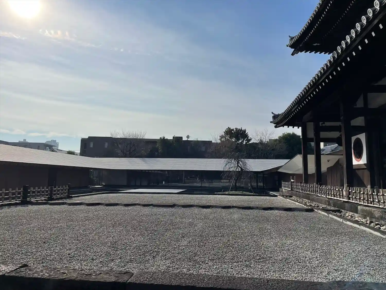 境内に入ると、お寺とは思えないスタイリッシュさがありました。調べたところ、本堂左の建物(庫裡)は隈…