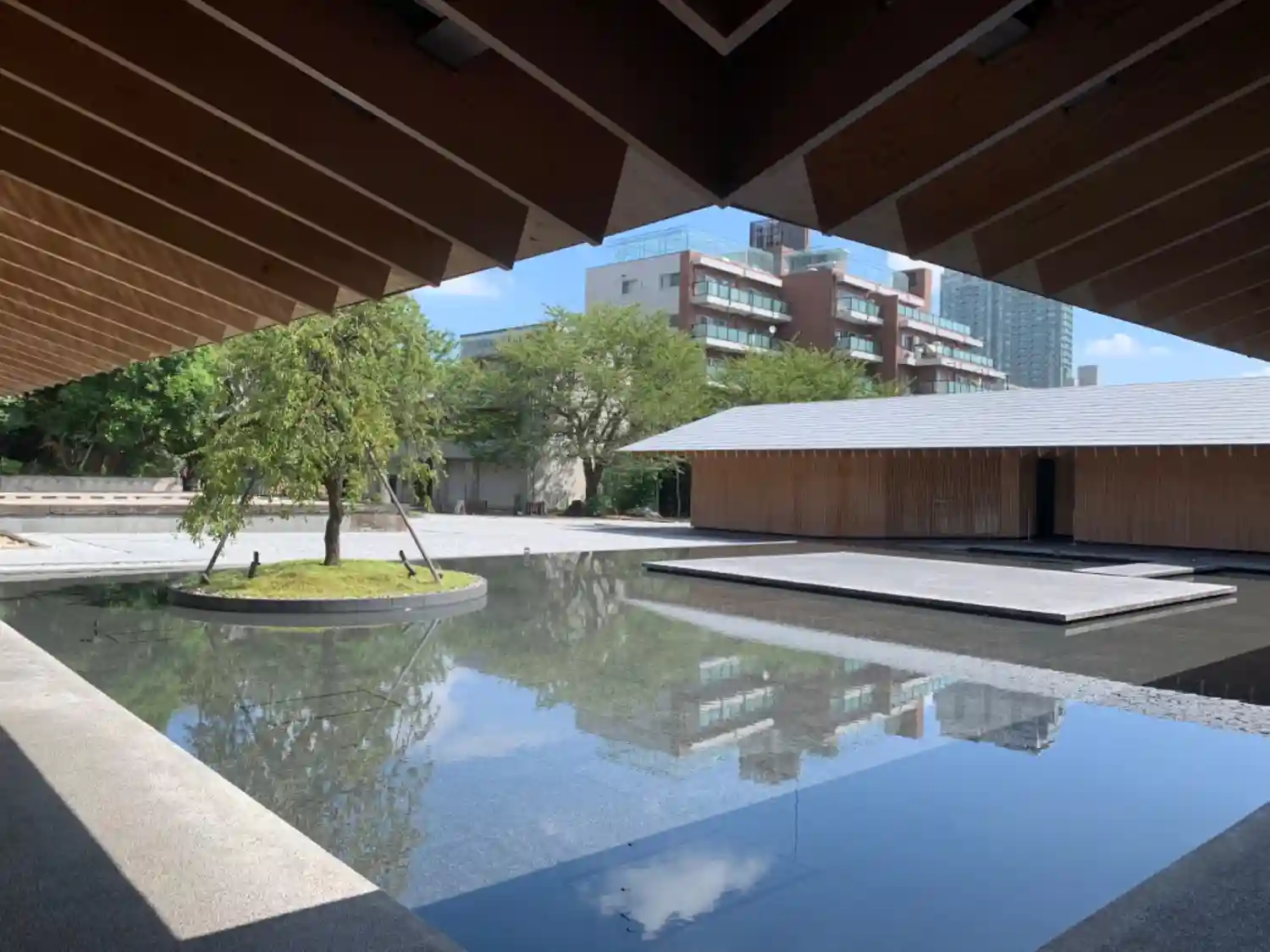 普段は入れませんが、水盤の上でイベントが行われたりします。