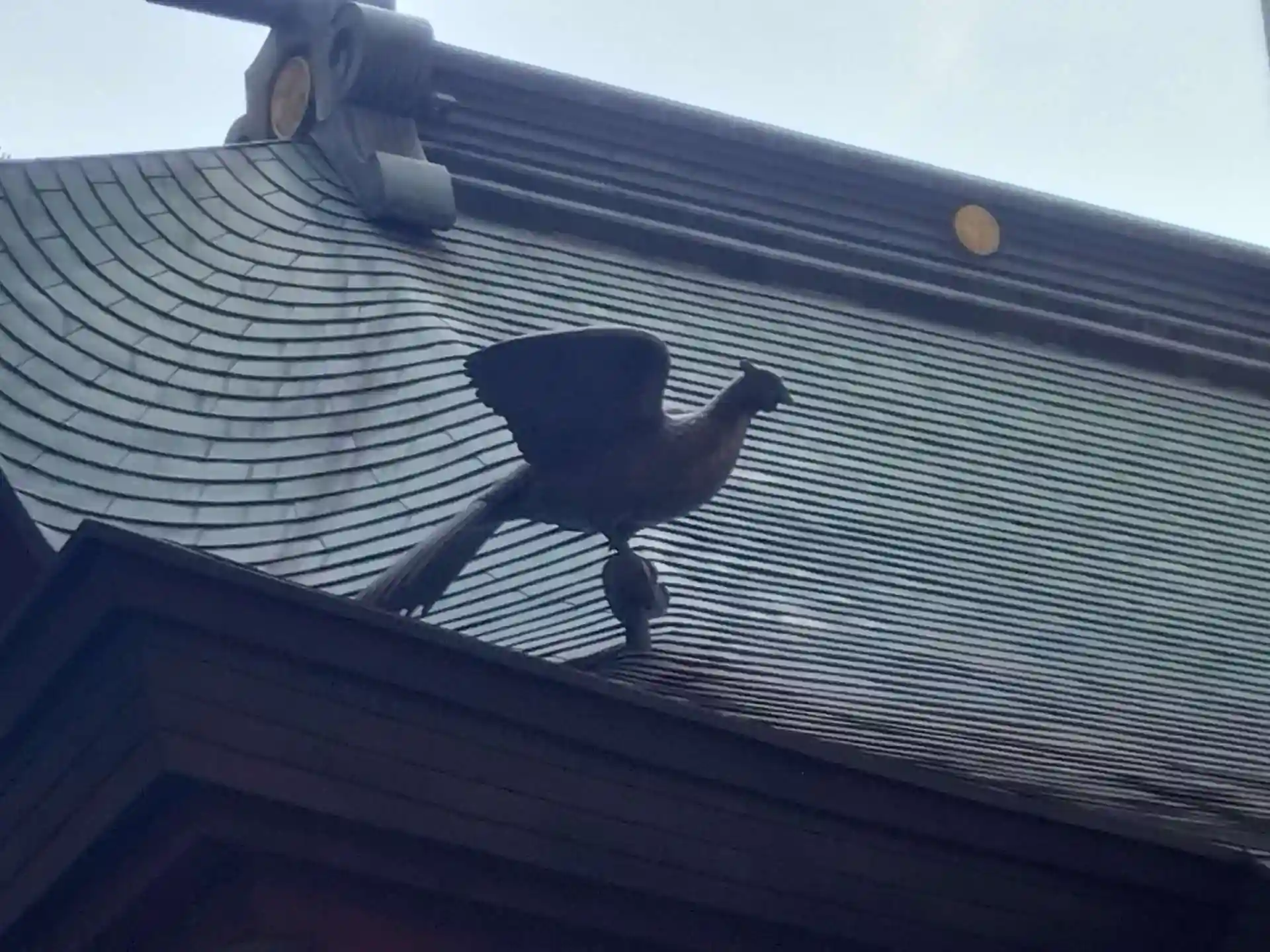 屋根には雉子が象られています。