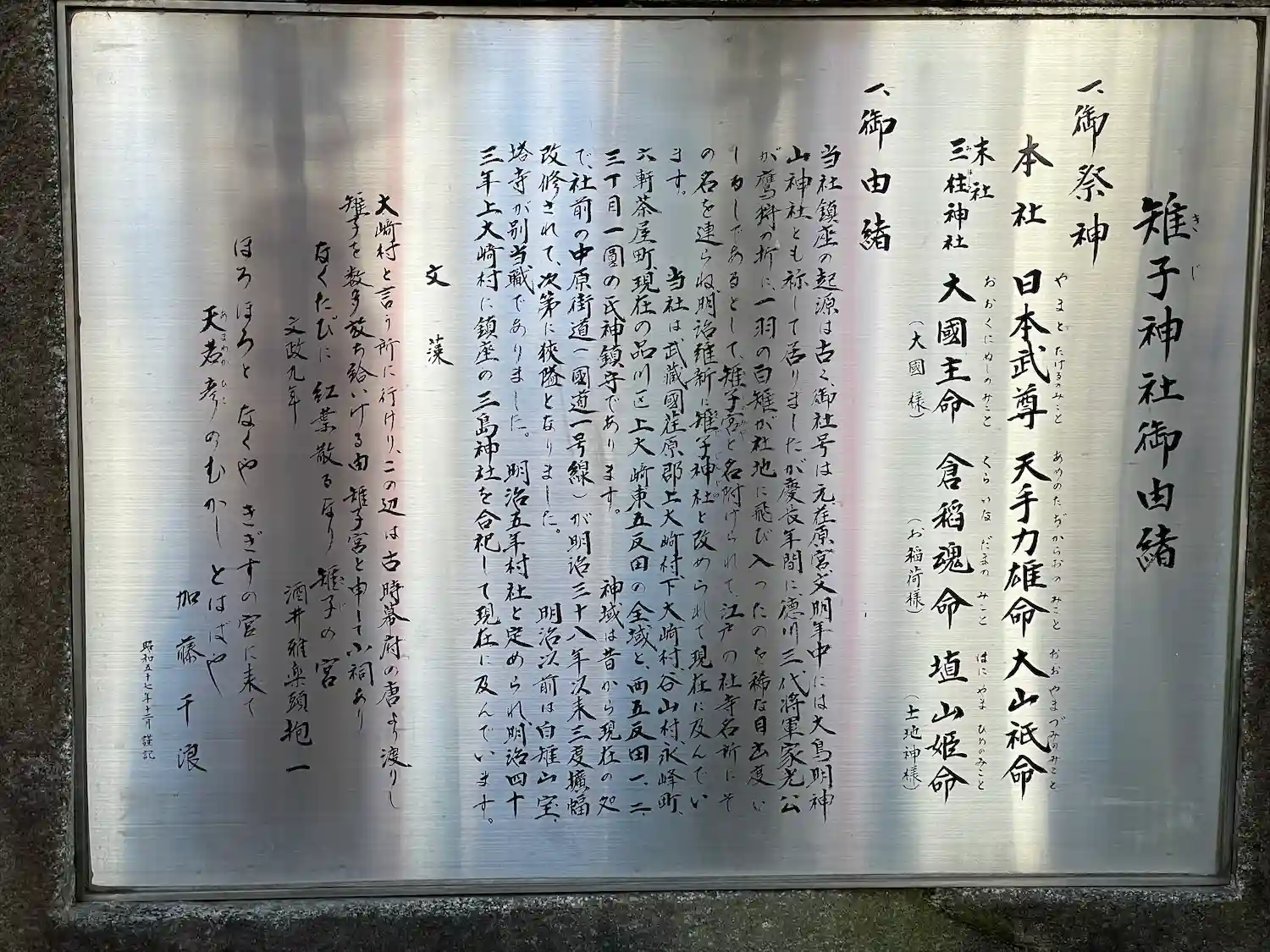 | ご祭神 | 《主》日本武尊,天手力雄命,大山祇命 | |