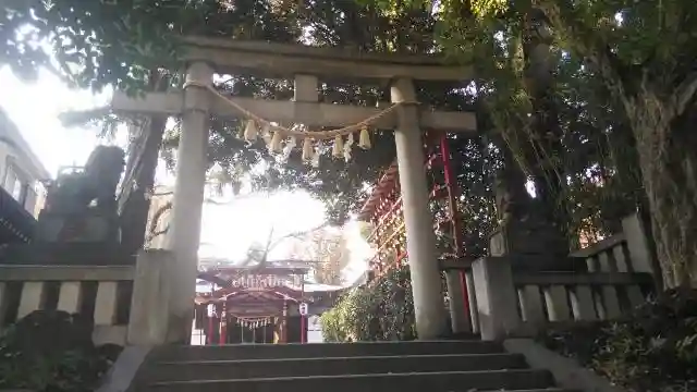 東京都品川区大崎に鎮座する神社で、当初は目黒川居木橋の南に所在していたが、数度の水害に遭い、これを避ける為、元禄年間(1688~1704)に一村挙げ、別当寺であった観音寺とともに現在の高台の地に移転したとされる。