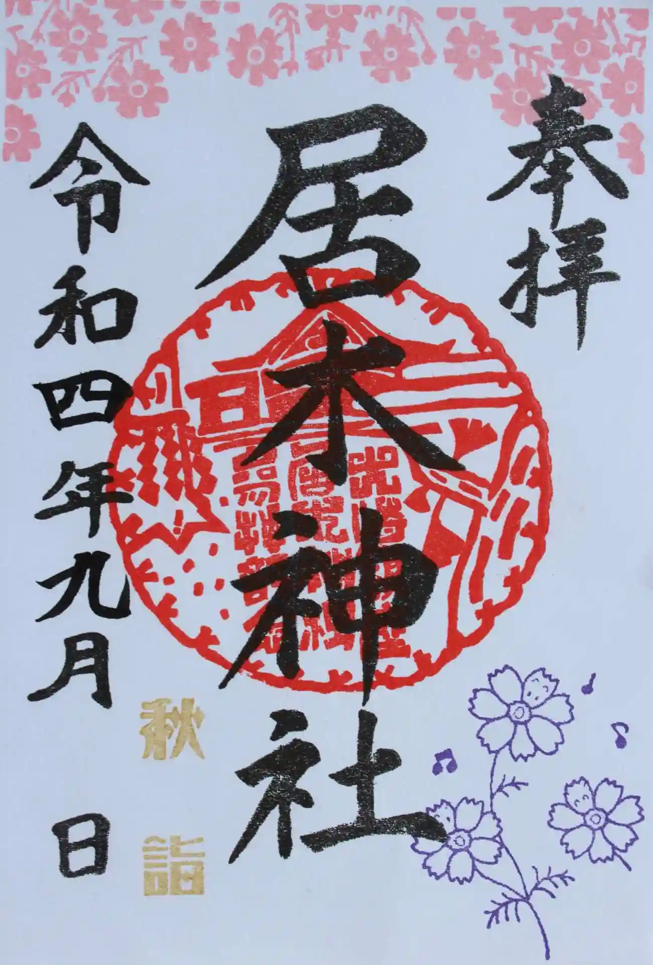 居木神社の限定御朱印|東京都大崎駅