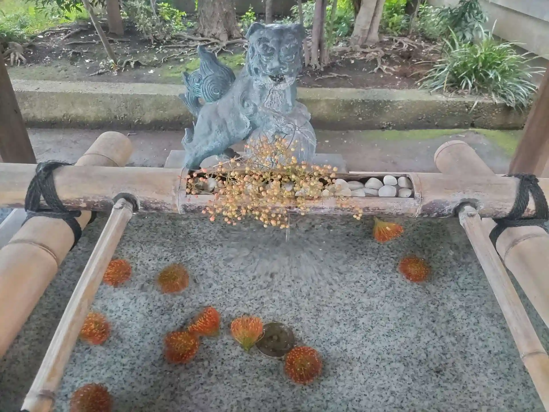 過去参拝。手水に菊の花が少しだけ浮かび、2022年10月末で2022東急花御朱印が終わりなので花手水の名残かなと思いました。茶筅のような面白い形の中菊で、供花定番なだけあり、長持ちするなと感心しました。