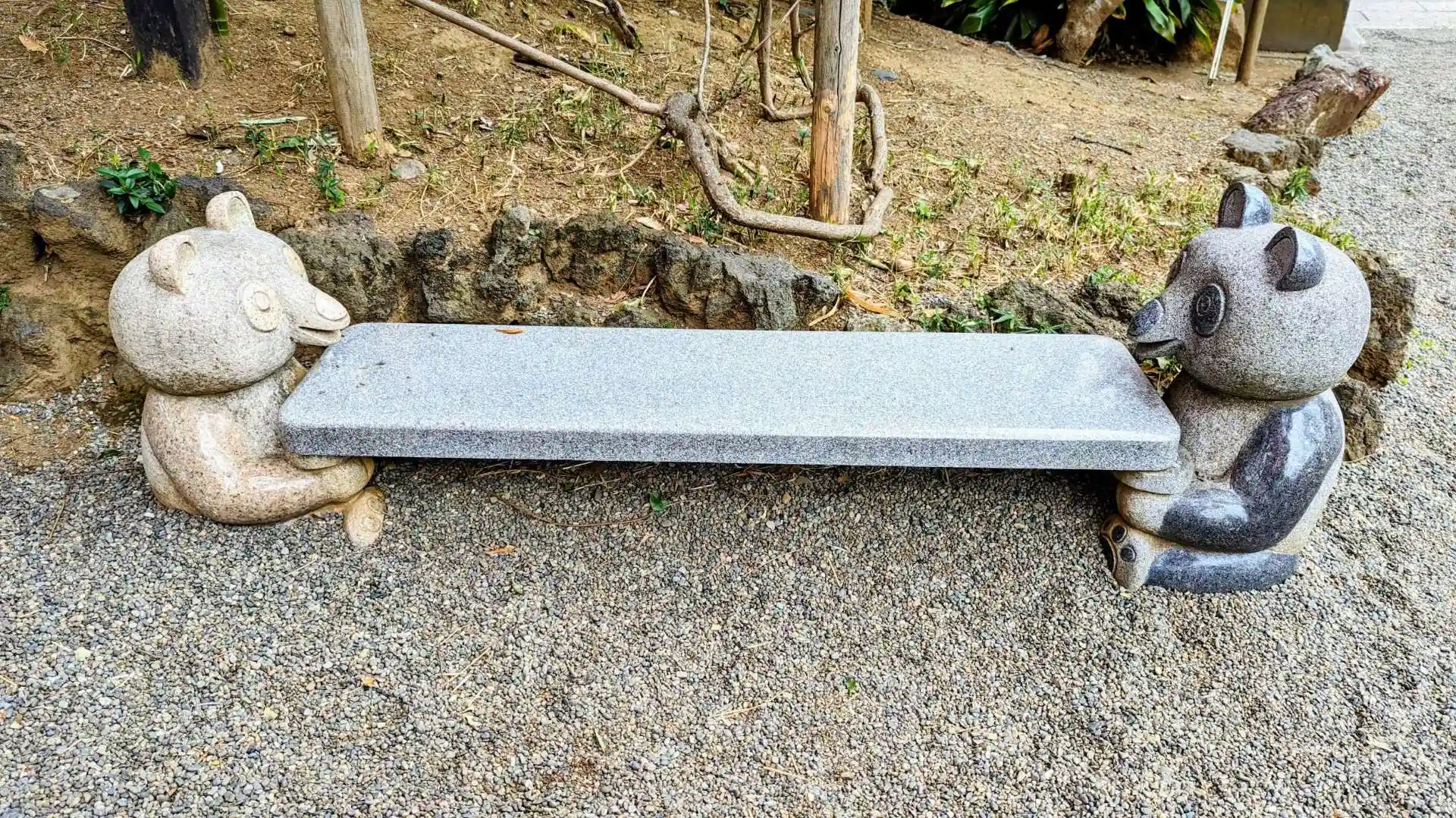 境内に可愛いクマさんとパンダさんの椅子がありました😊