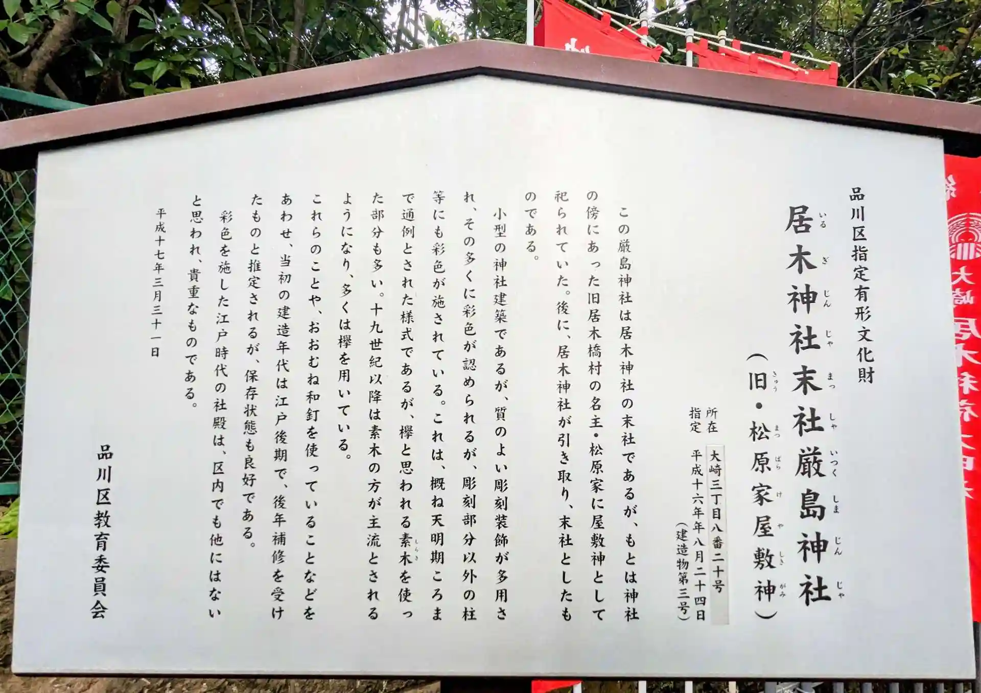 境内末社の厳島神社は品川区指定有形文化財に指定されています。
