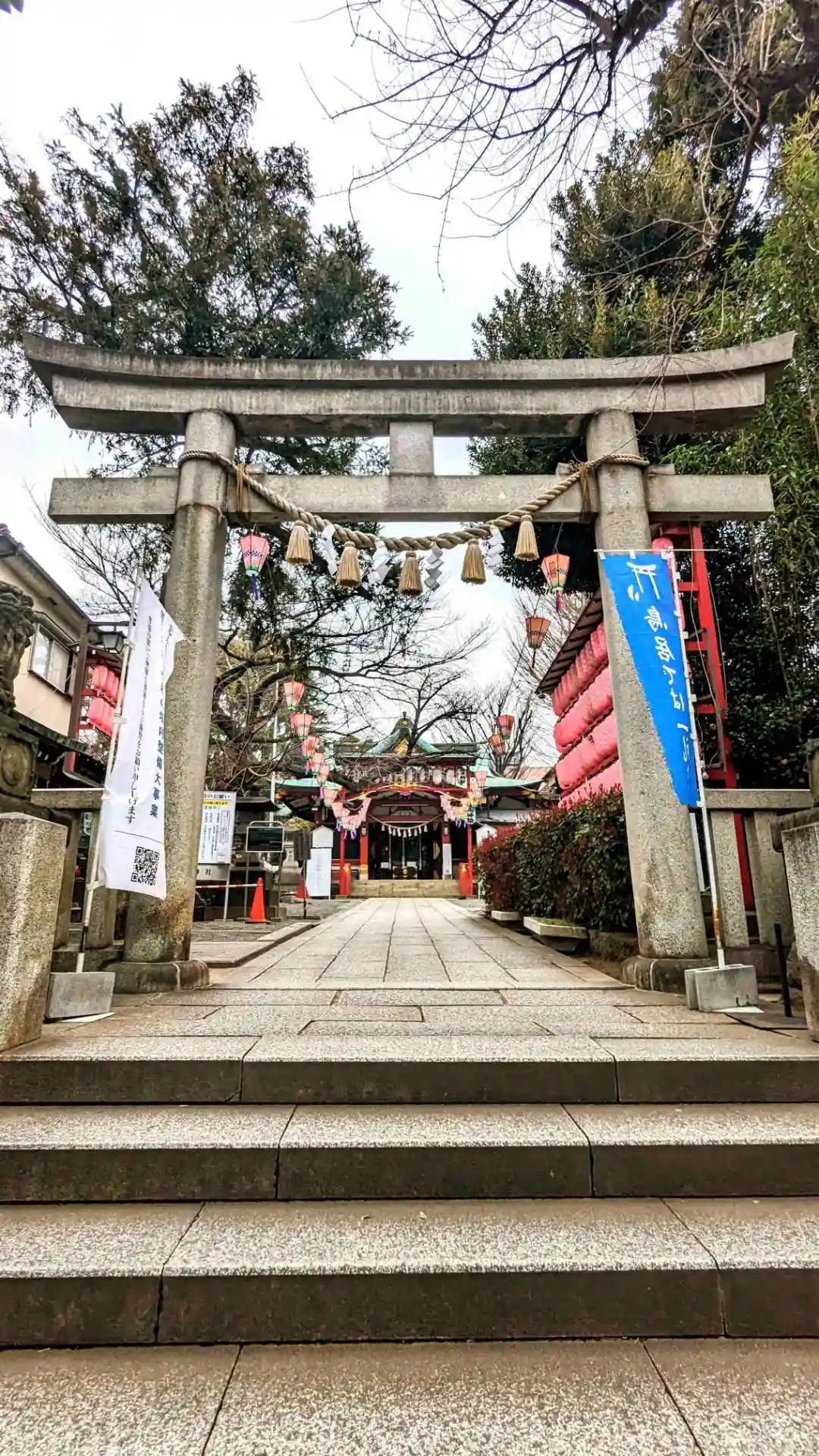 また、拝殿前の石段の横手には溶岩積による富士塚があり、しながわ百景に選定されています。
