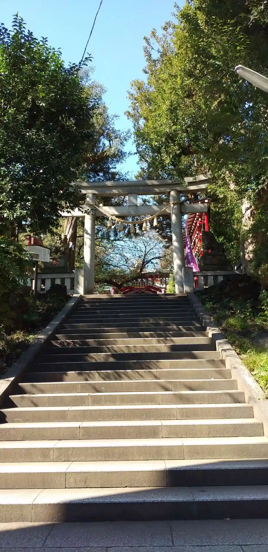 高層ビルが建ち並ぶ中、落ち着いた雰囲気の神社です。