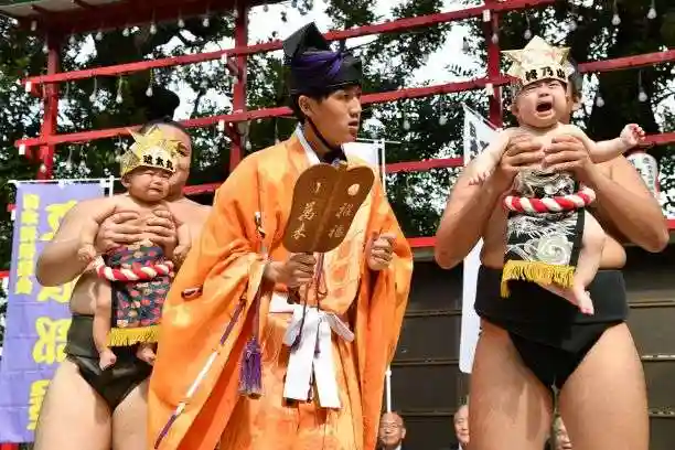 会場(境内)では、一心泣き相撲、御祈祷(御本殿)、赤ちゃん力石(四股奉納)、赤ちゃん手形、背伸び太鼓、獅子舞等のイベントをお楽しみください。全てをまわると1時間ほどかかります。