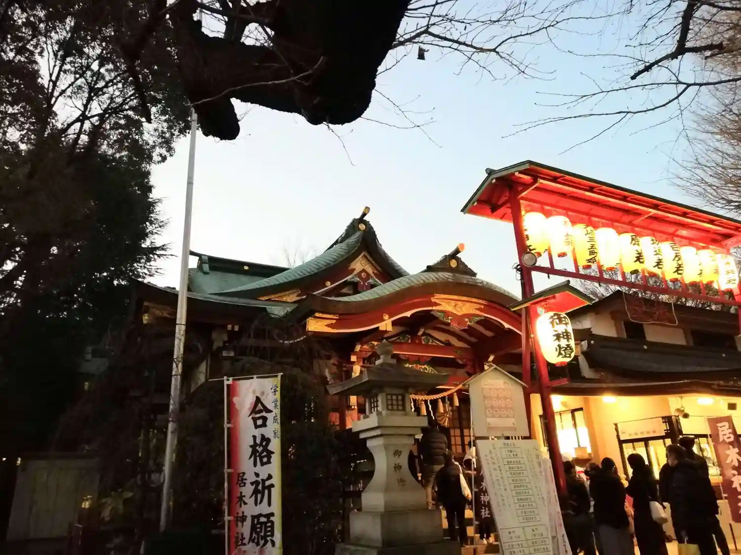 鳥居。右側の提灯を吊るすところに電球が入り、正月準備をしていました。