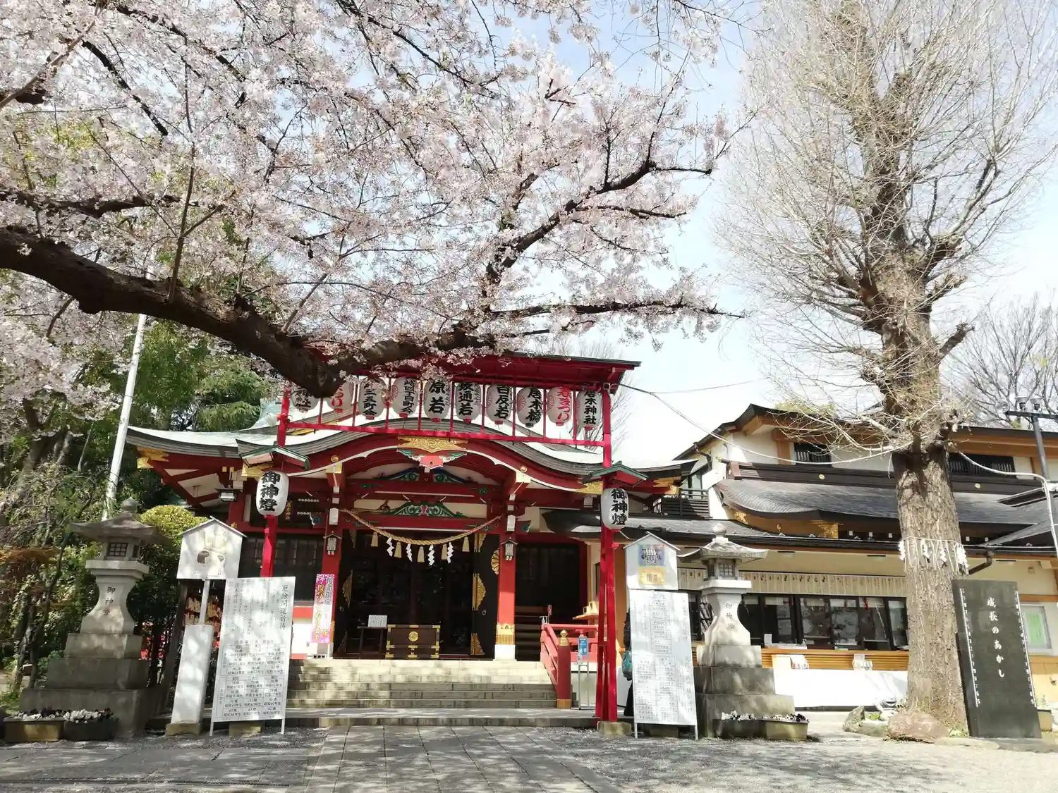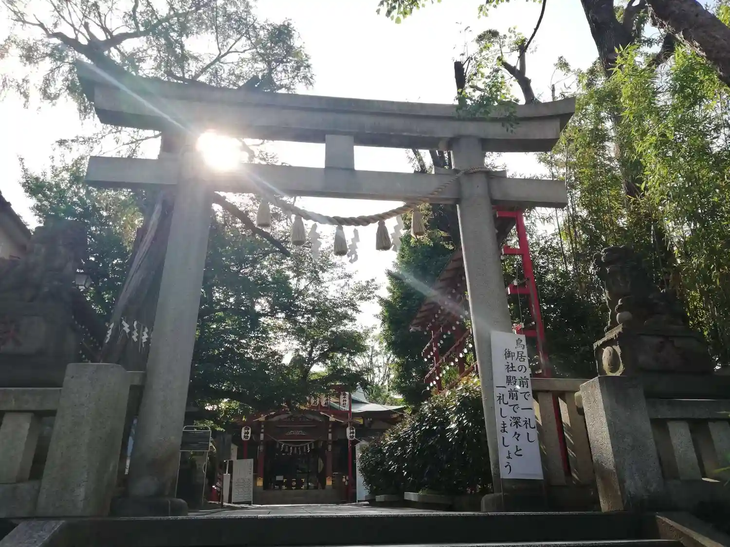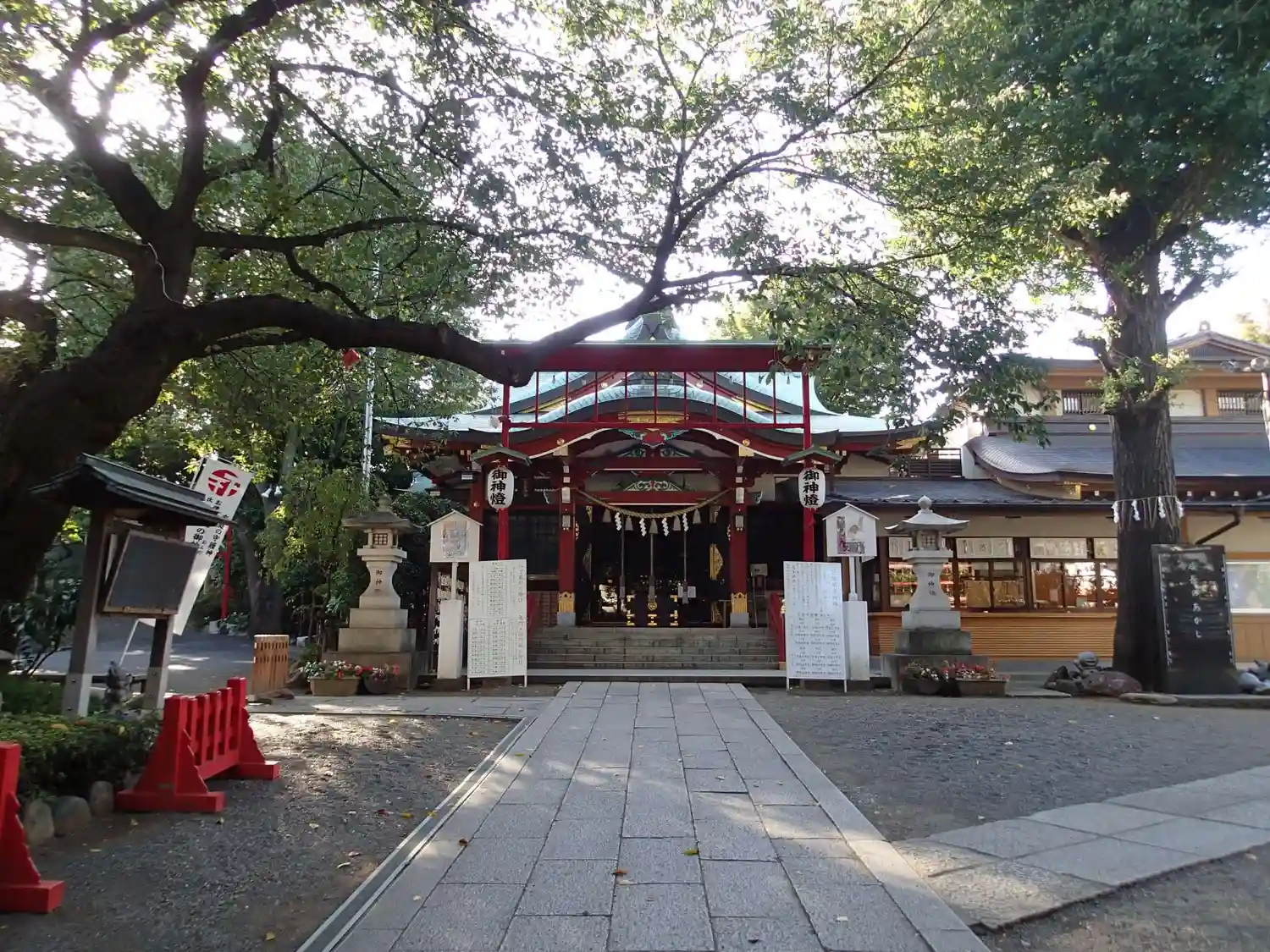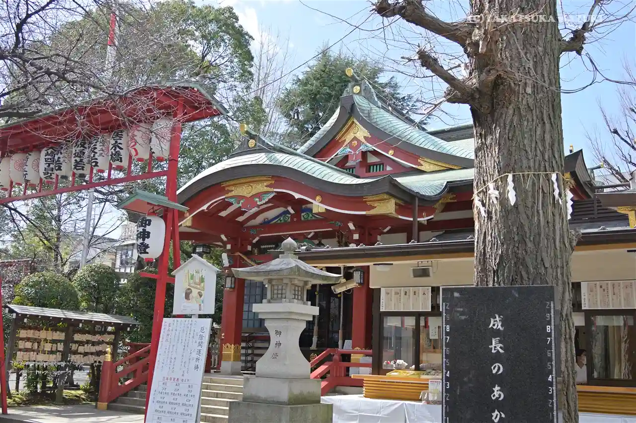 氏子区域の住宅街と駅の中心に鎮座しているため、日中は人の通りが絶えない神社でもあります。