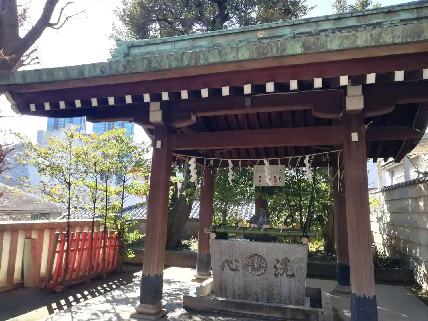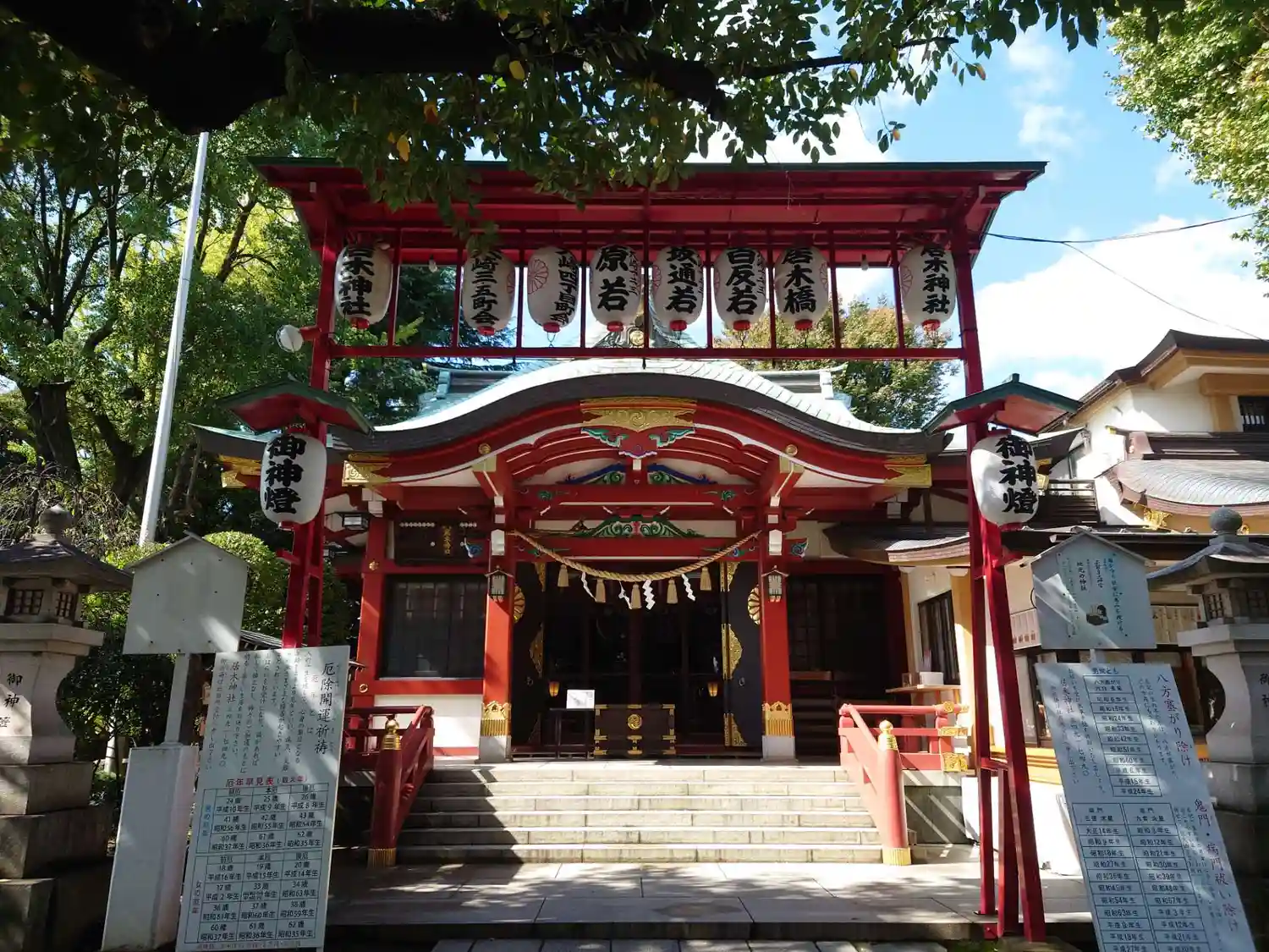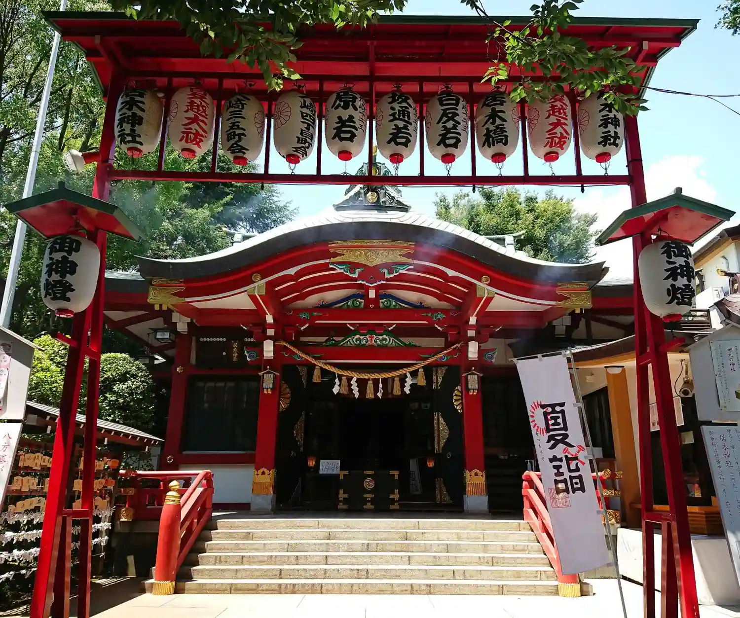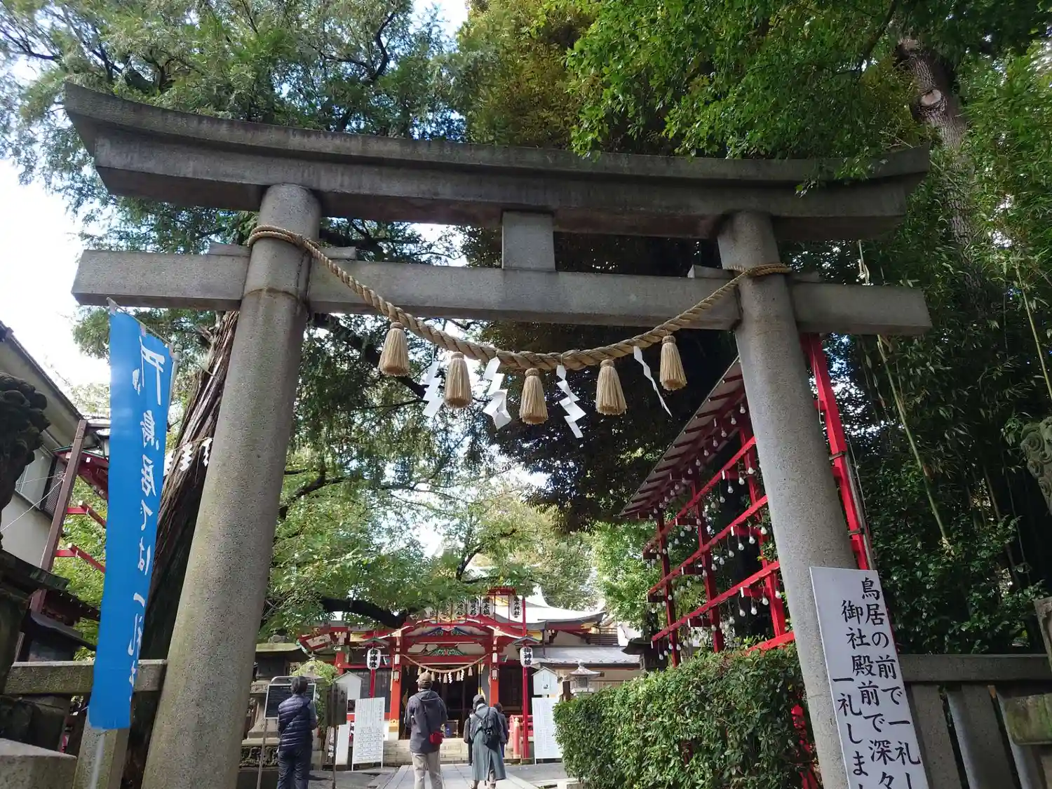氏子区域の住宅街と駅の中心に鎮座しているため、日中は人の通りが絶えない神社でもあります。