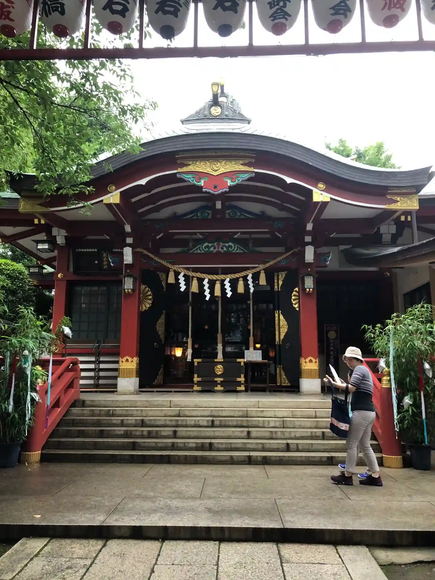 末社前。提灯の影がリズミカル