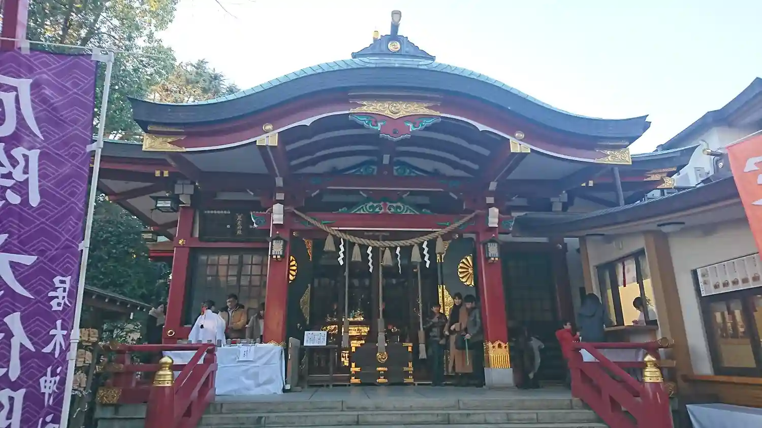 社殿と日の丸。