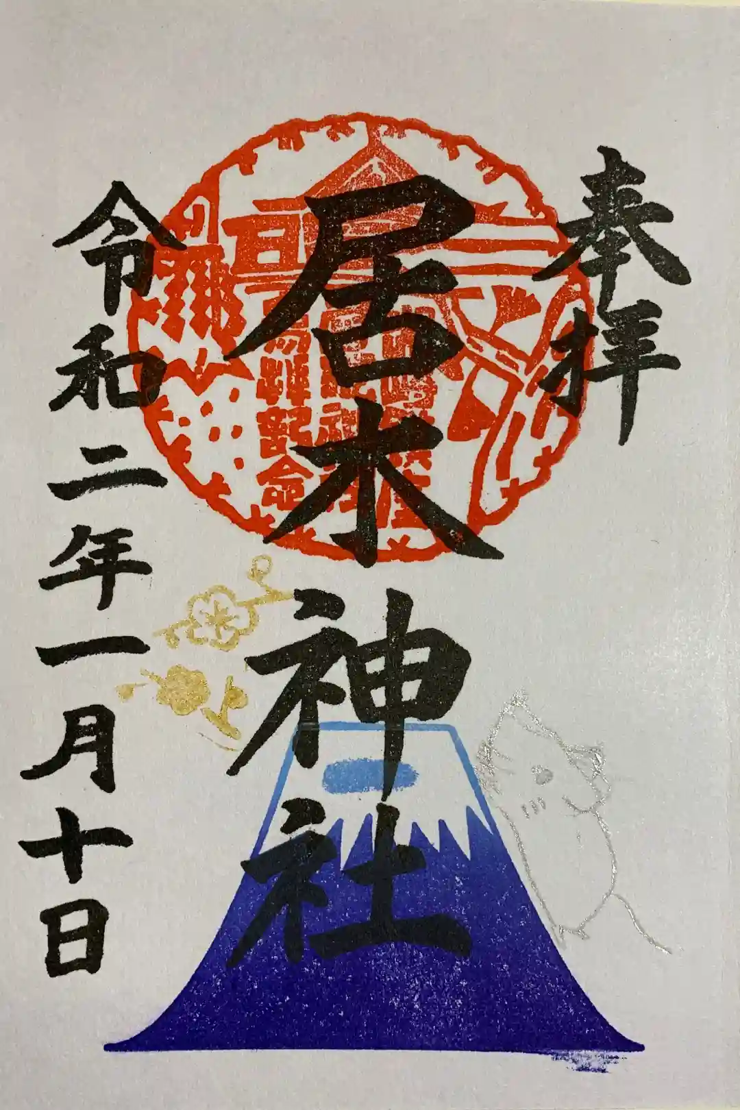 1月限定御朱印です。富士山を力強く駆け上る干支の子が毎年可愛らしいです。1月中授与されます。