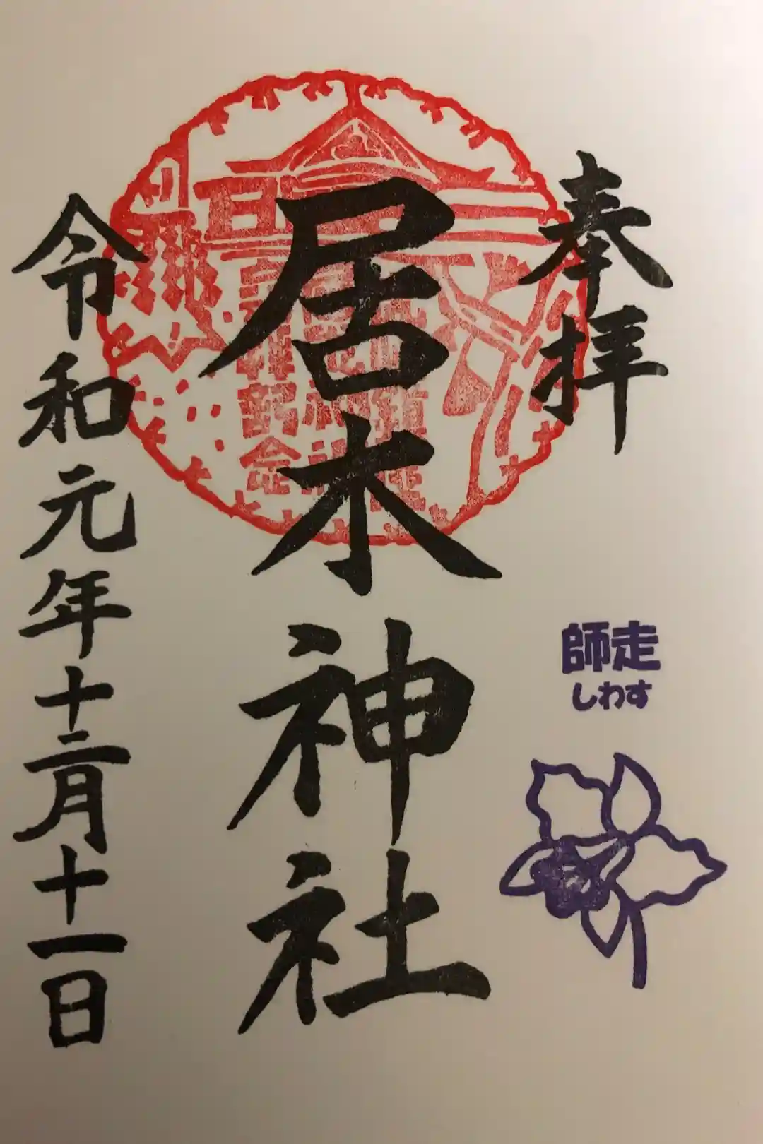 居木神社の通常御朱印。