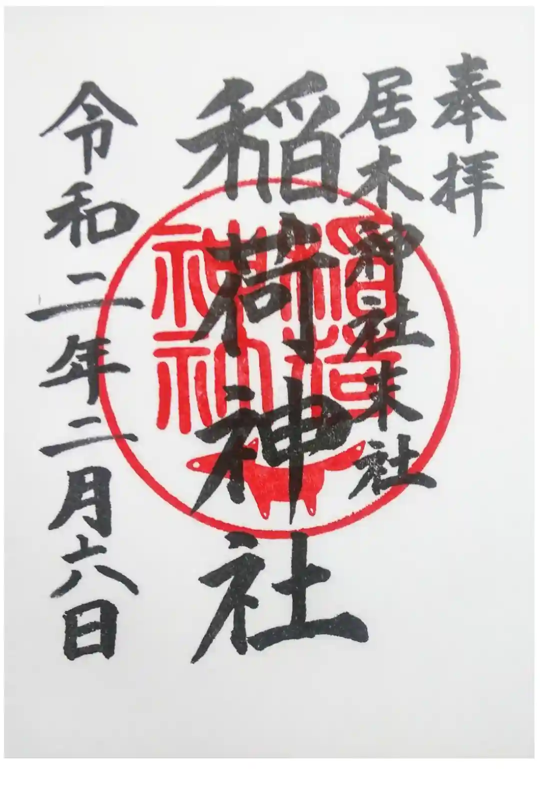 末社の稲荷神社の御朱印です。