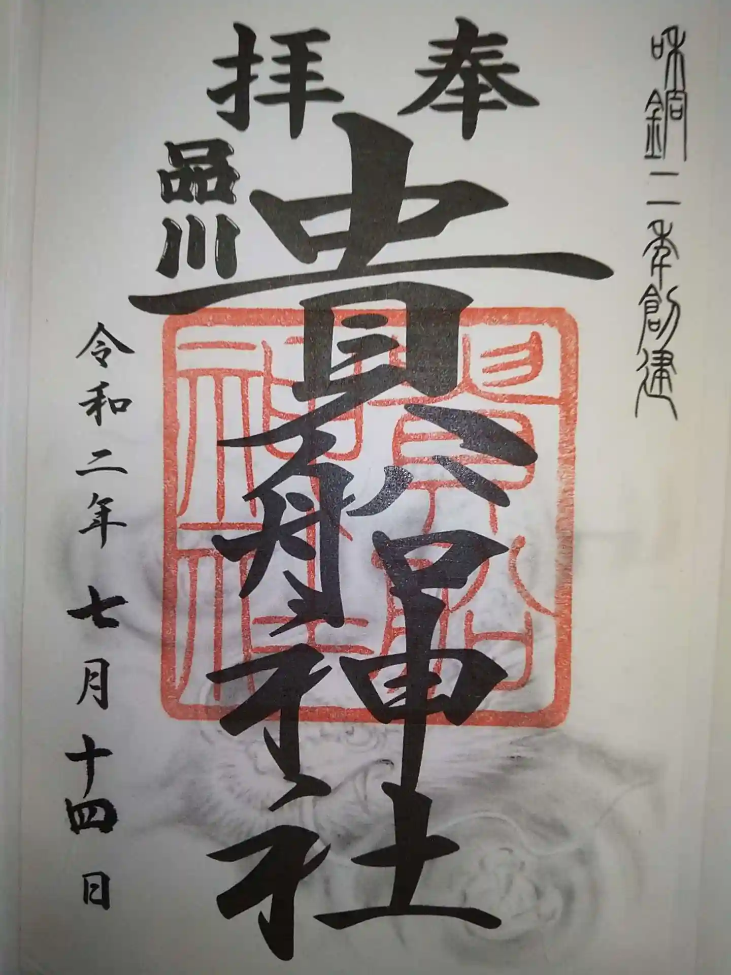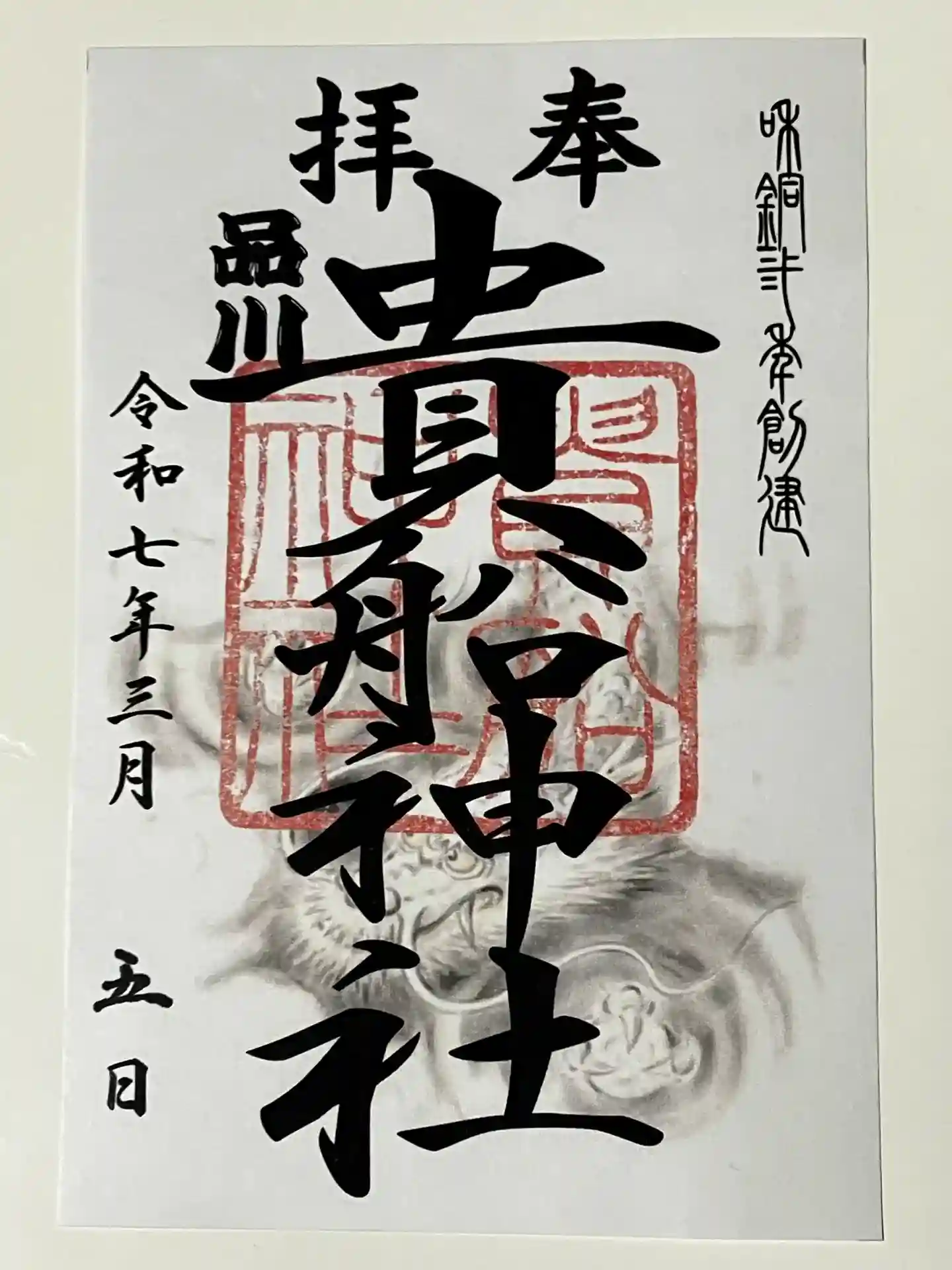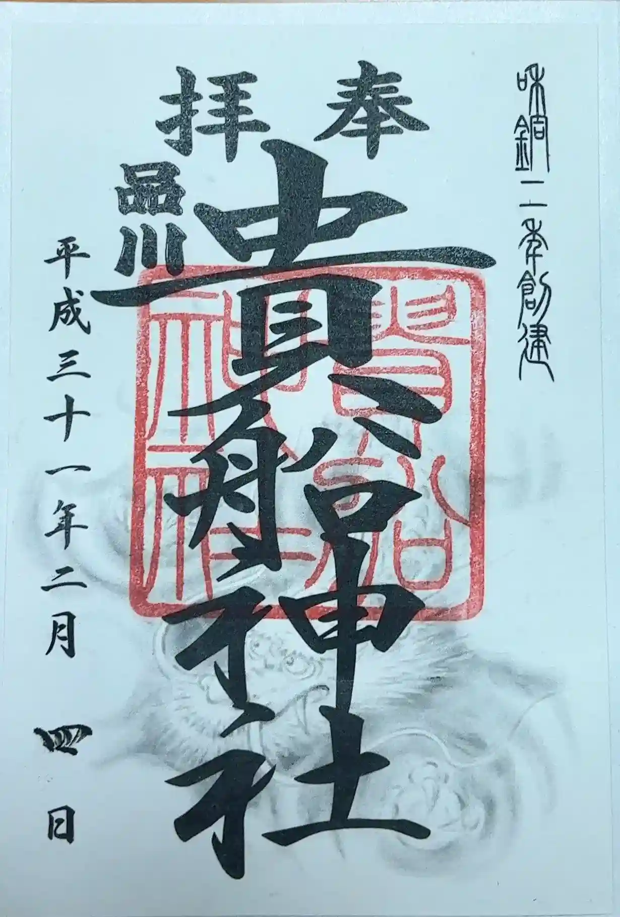 朝の9時過ぎに社務所のベルを鳴らし、書置きの御朱印を頂戴しました。うっすらとした龍がかっこいい。参…