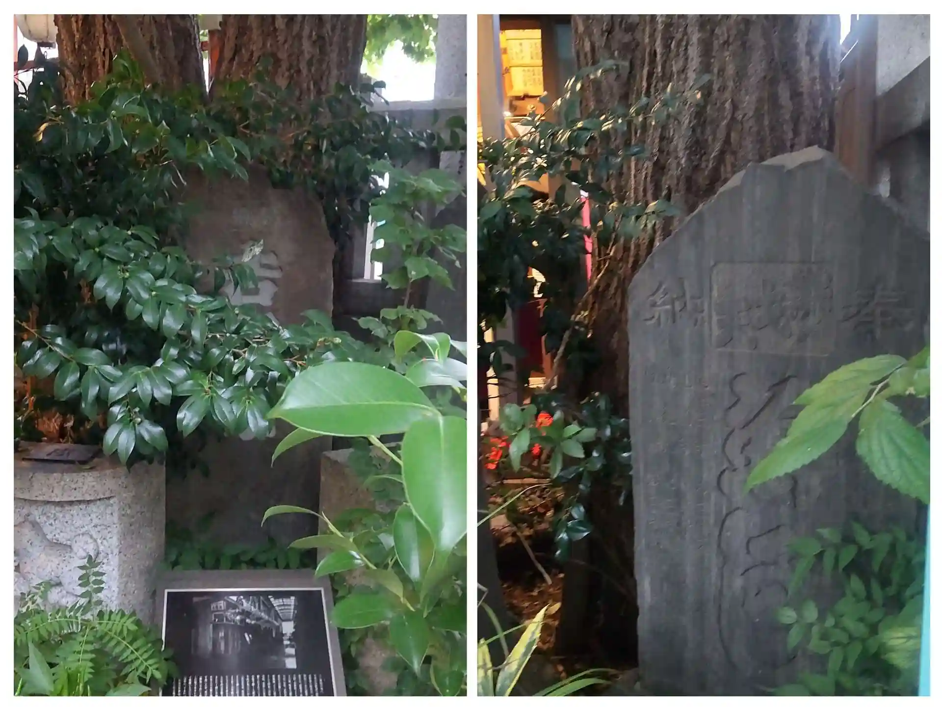 出水鉢の後ろに末社