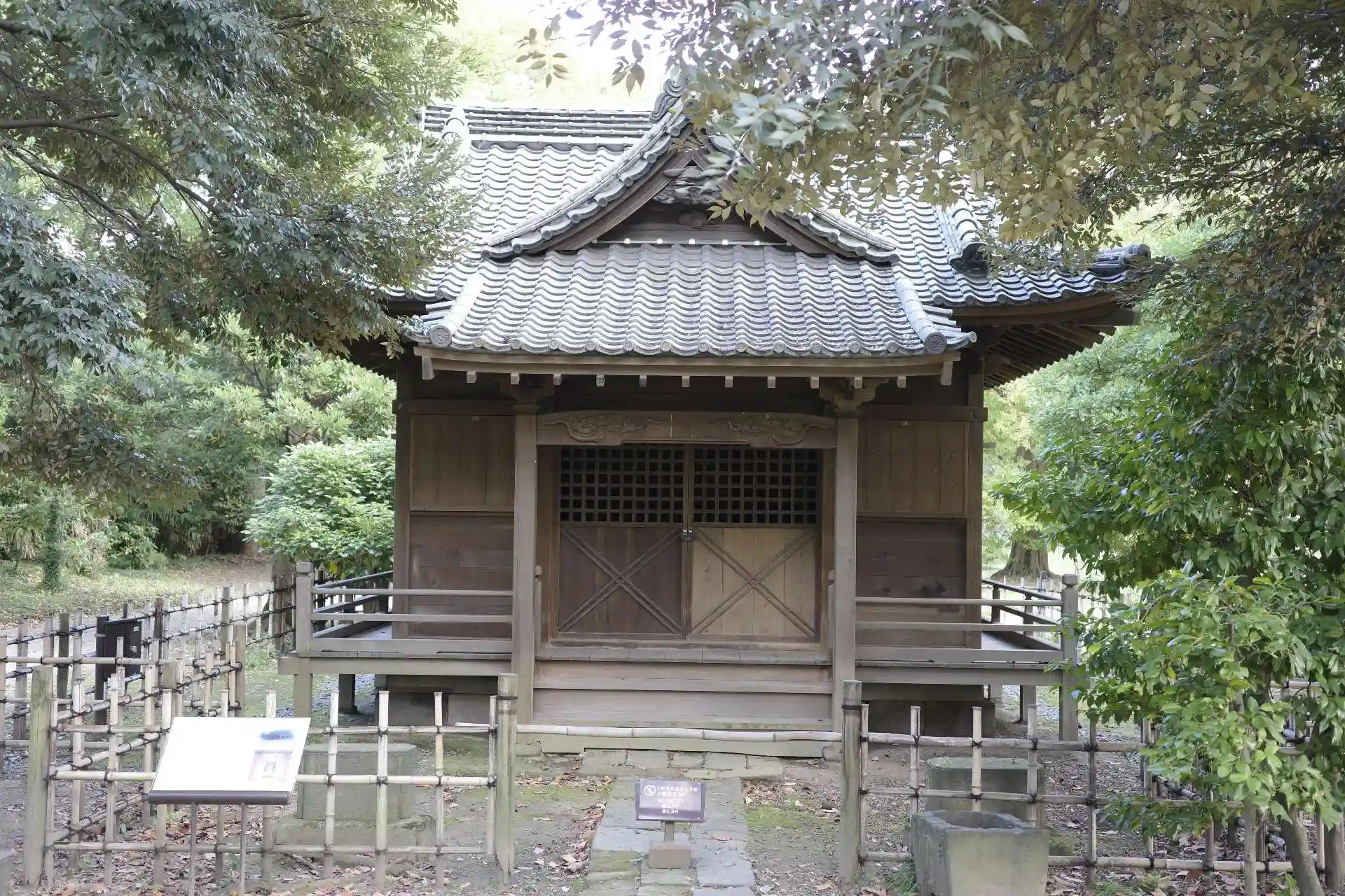 ゆりかもめ線 汐留駅から海側に歩いていき、浜離宮庭園の中にあります。説明によると震災などで何度か修理したようです。神社の近くにお花畑があり、コスモスが一面に咲いていてきれいでした。無人のようで御朱印はないようです。近くに売店がありましたが、神社とは関係なさそうでした。