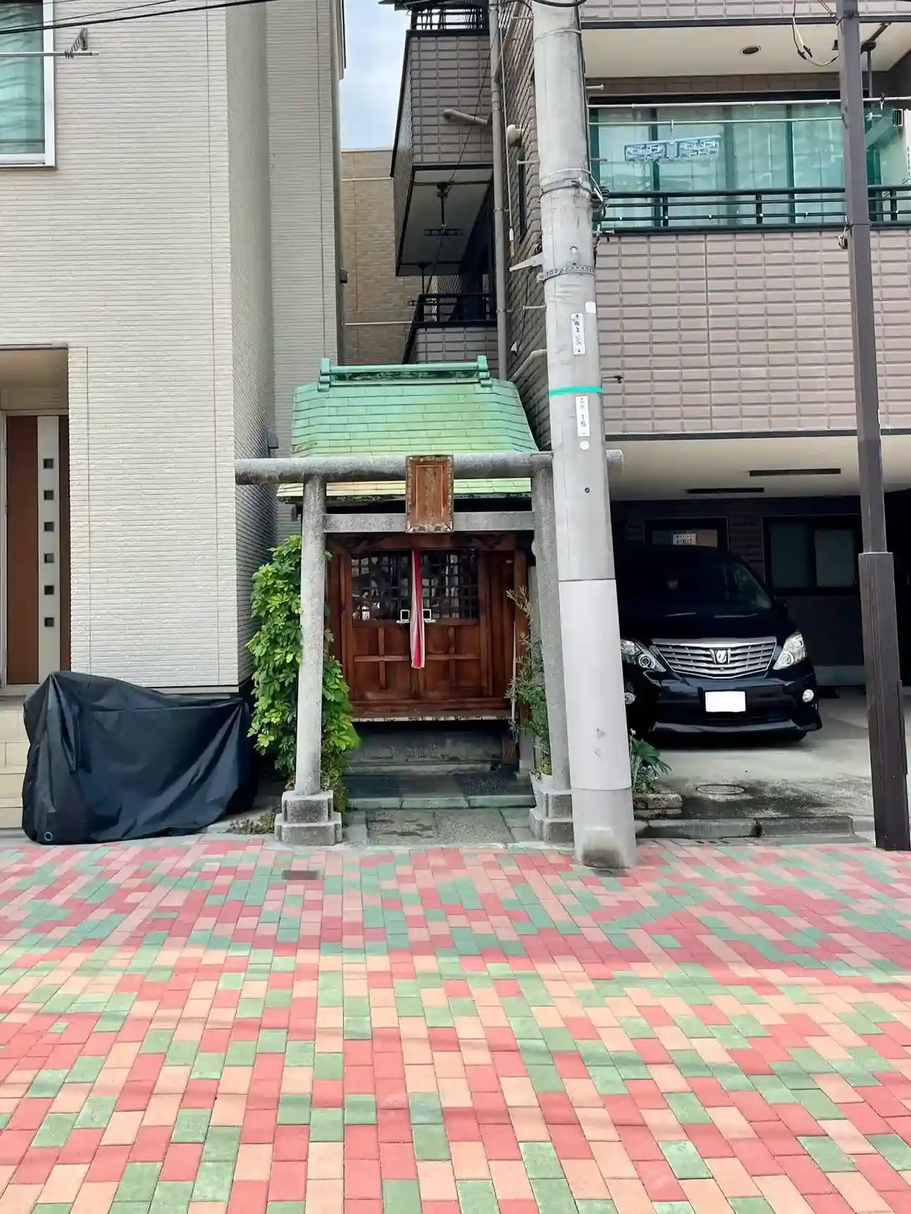 住宅に挟まれた小さな神社で見逃しそうになりました。