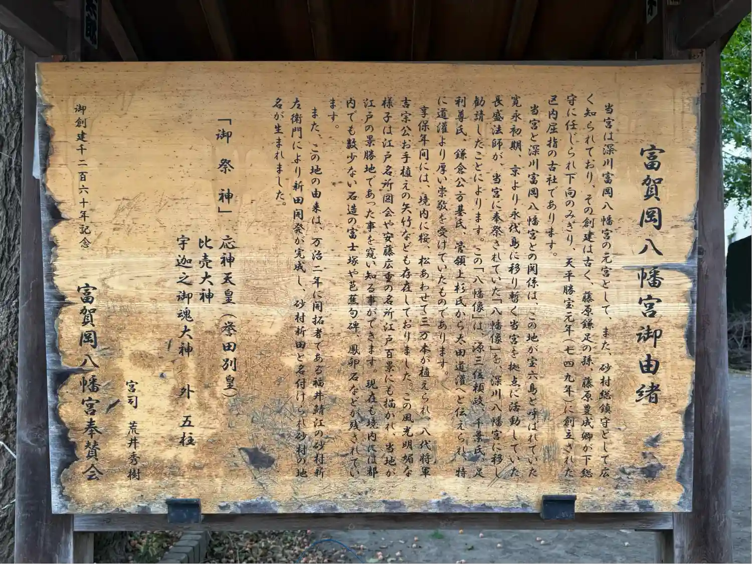 この由緒書を読みこんでたら、鳥のフンが袖にポトッと…神社で水道をお借りしました😅
