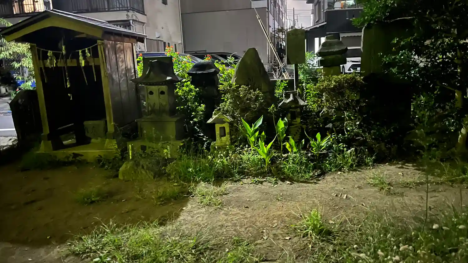 祠、夜なので不明