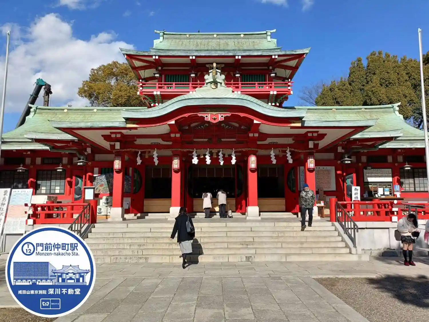 駅から出ると、浅草のようなお店が並び、いい感じですが、おそらく成田山深川不動堂の通りなので、お寺と一緒にしない、というマイルールで、赤い大鳥居⛩️に向かいました。