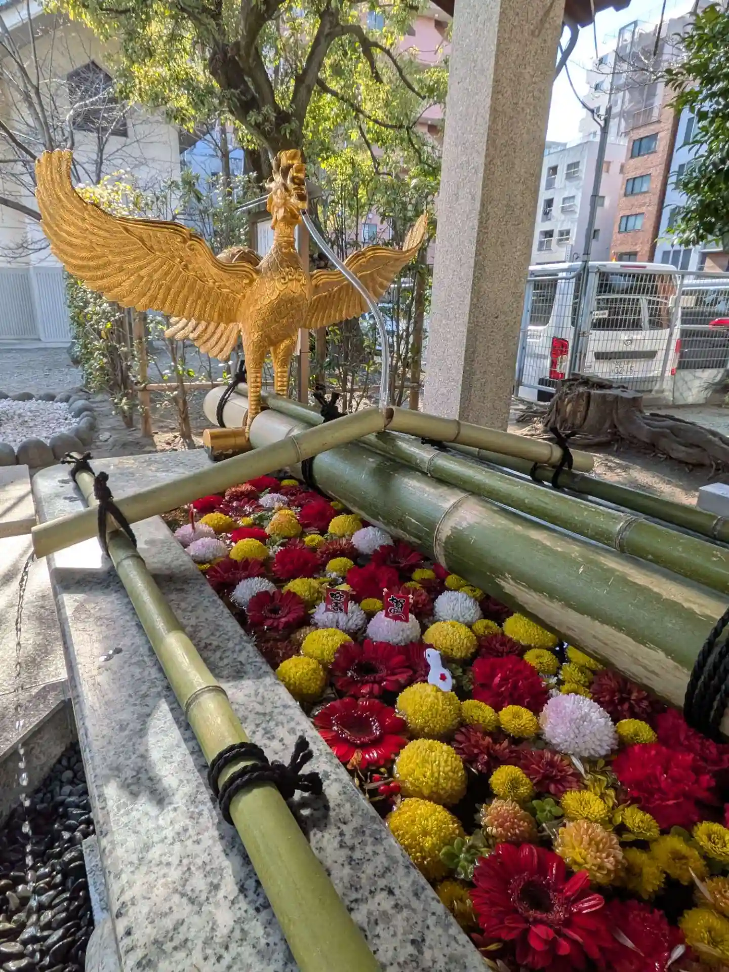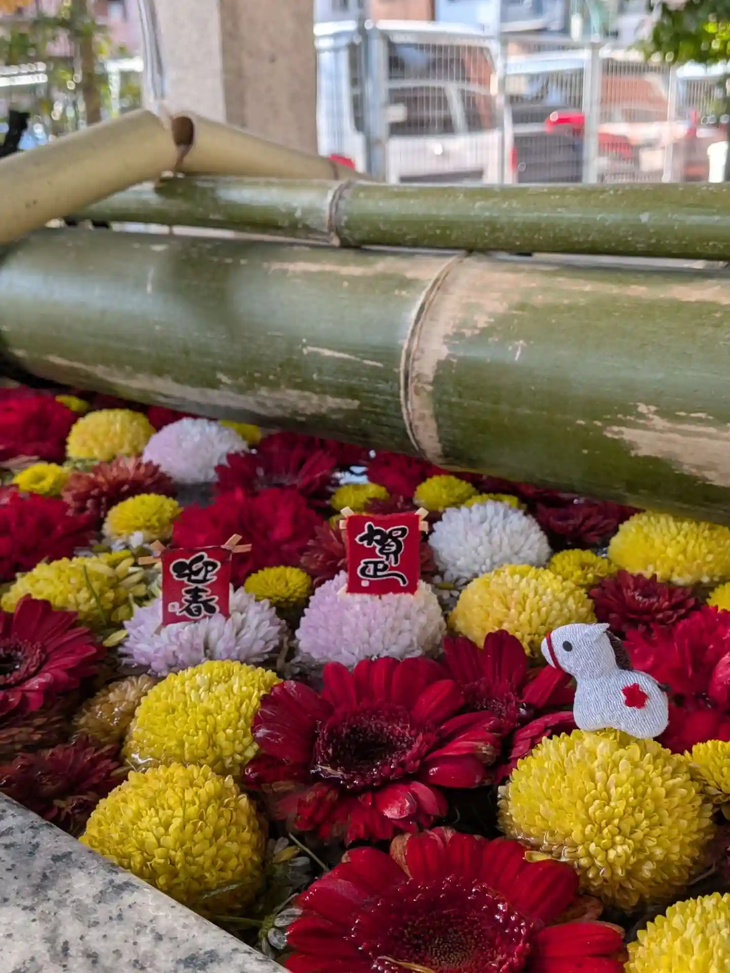 花手水にお正月らしい飾りが入っていて、かわいかったです🎍