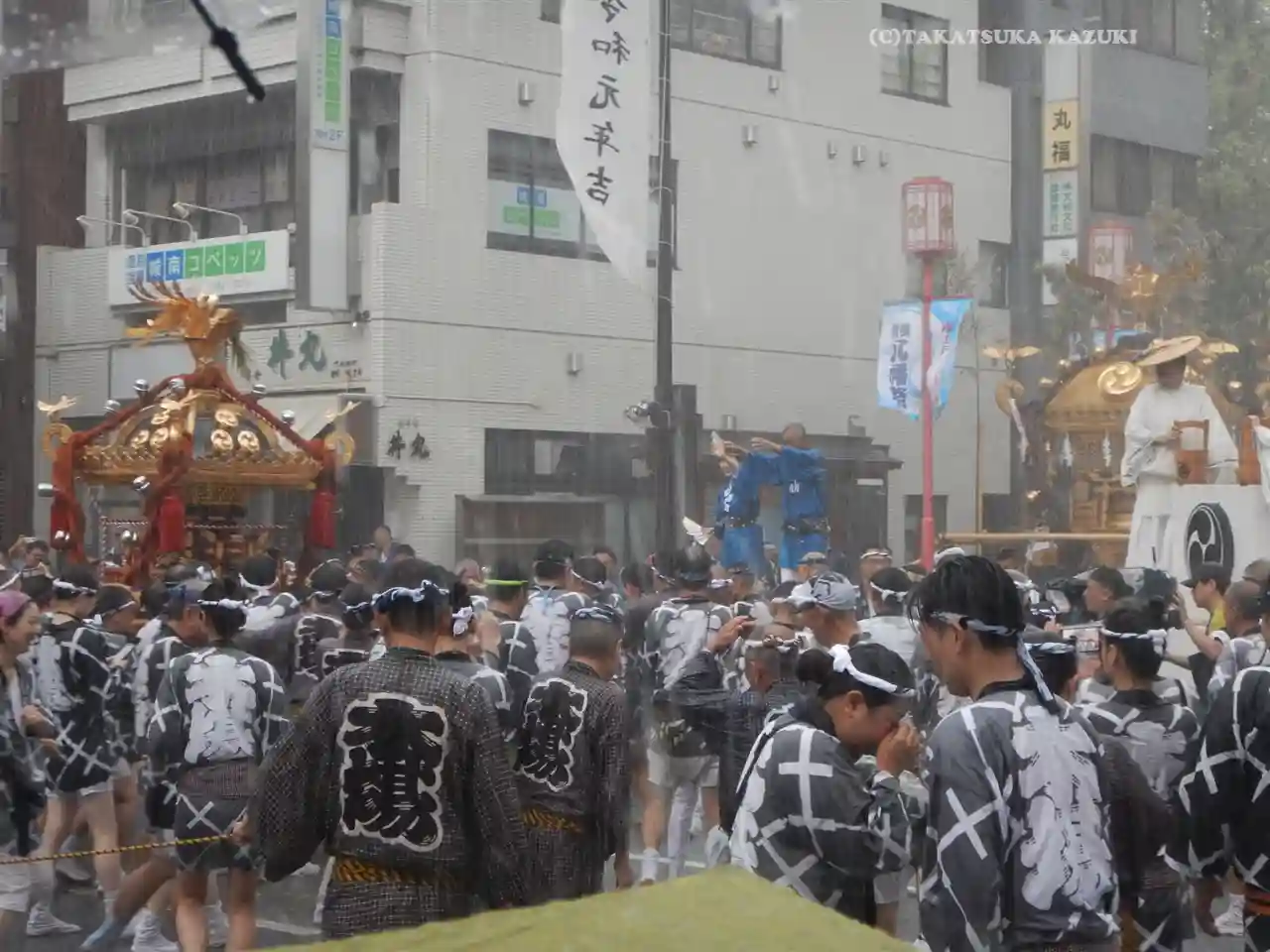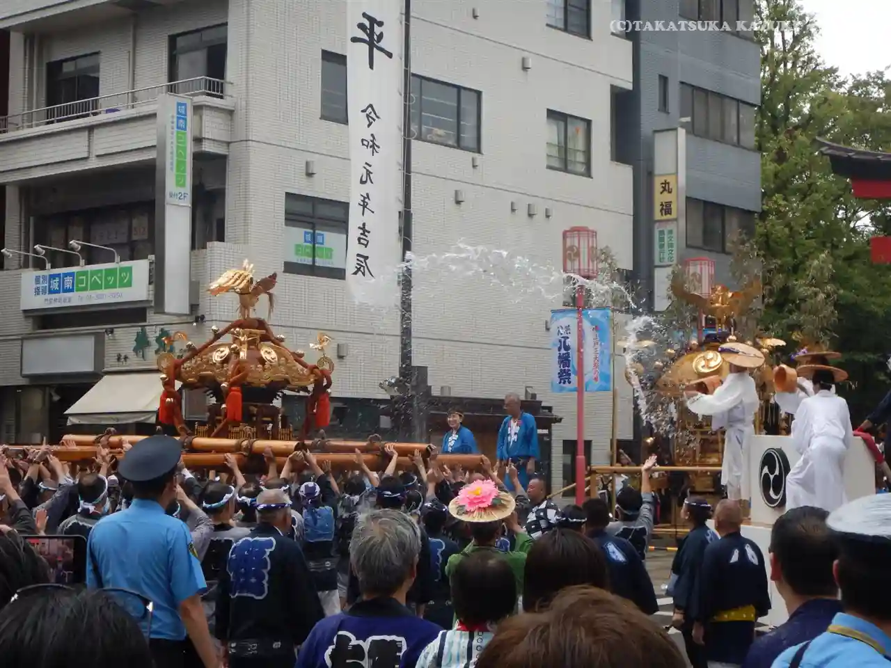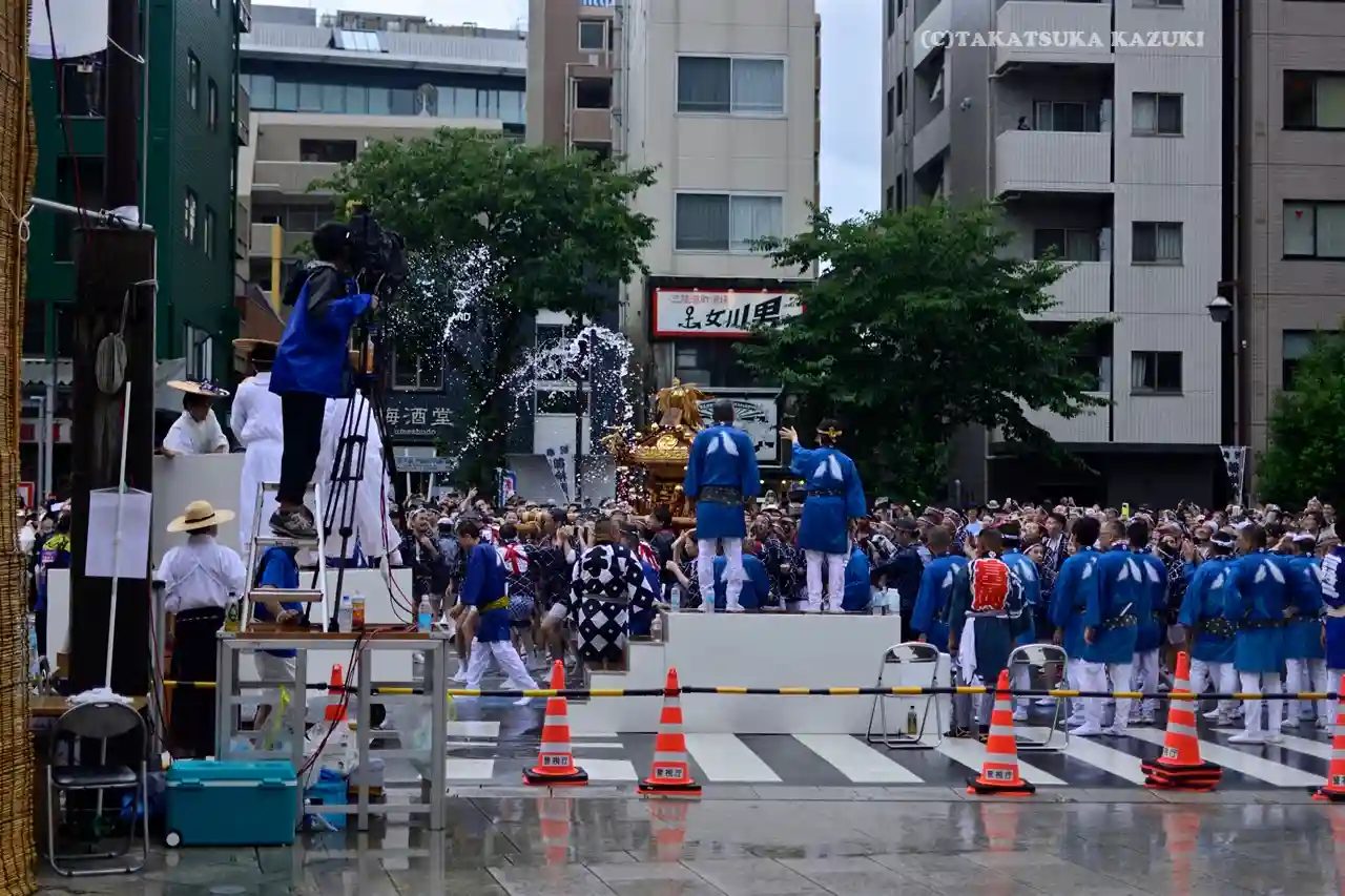神輿に水を…