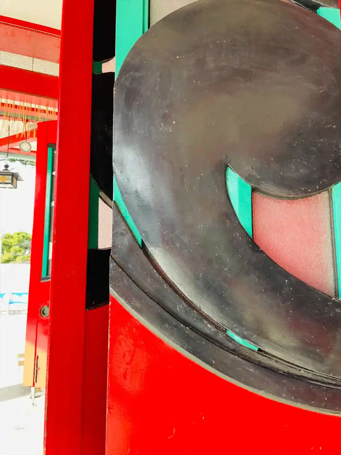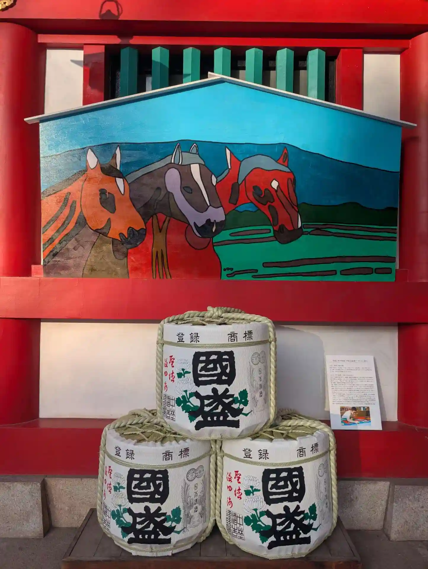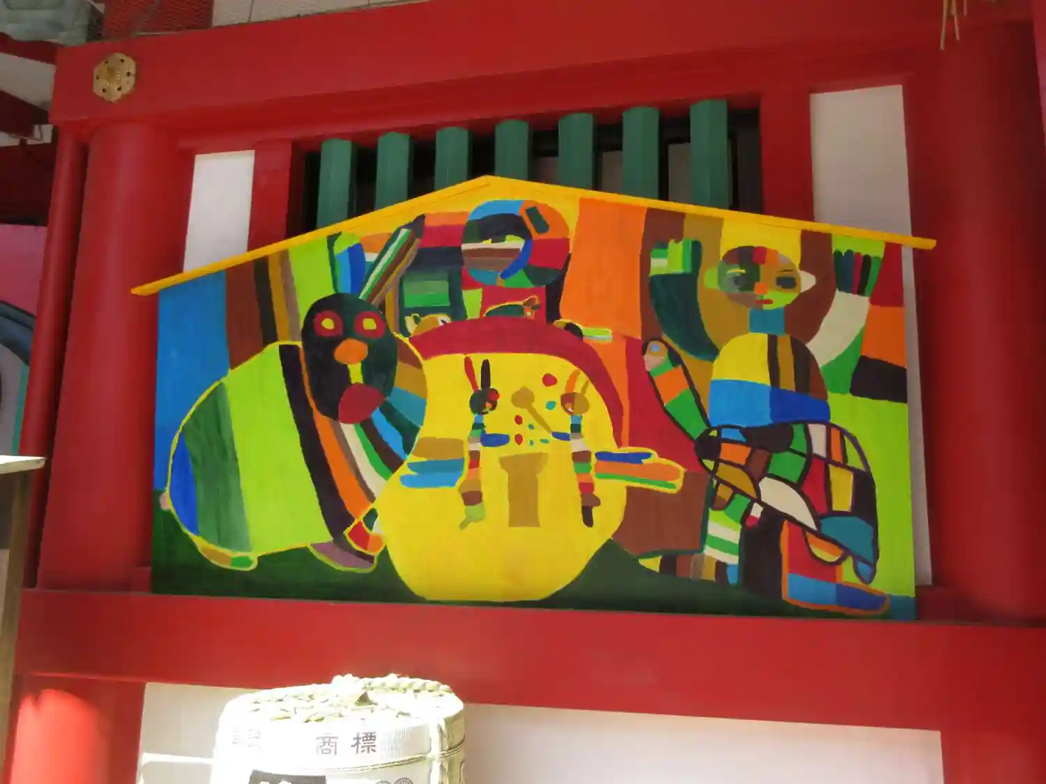 社殿にウサギと亀のポップな大きな絵馬が飾られていました