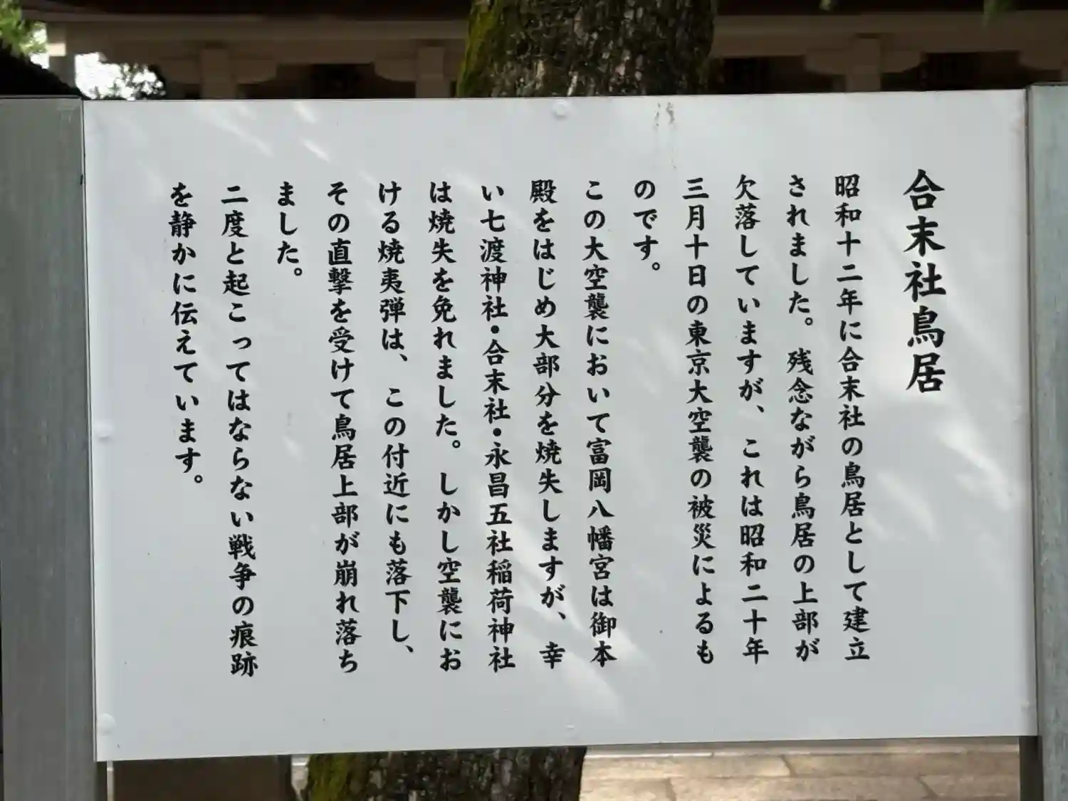 東京大空襲で柱だけが残ったそうです
