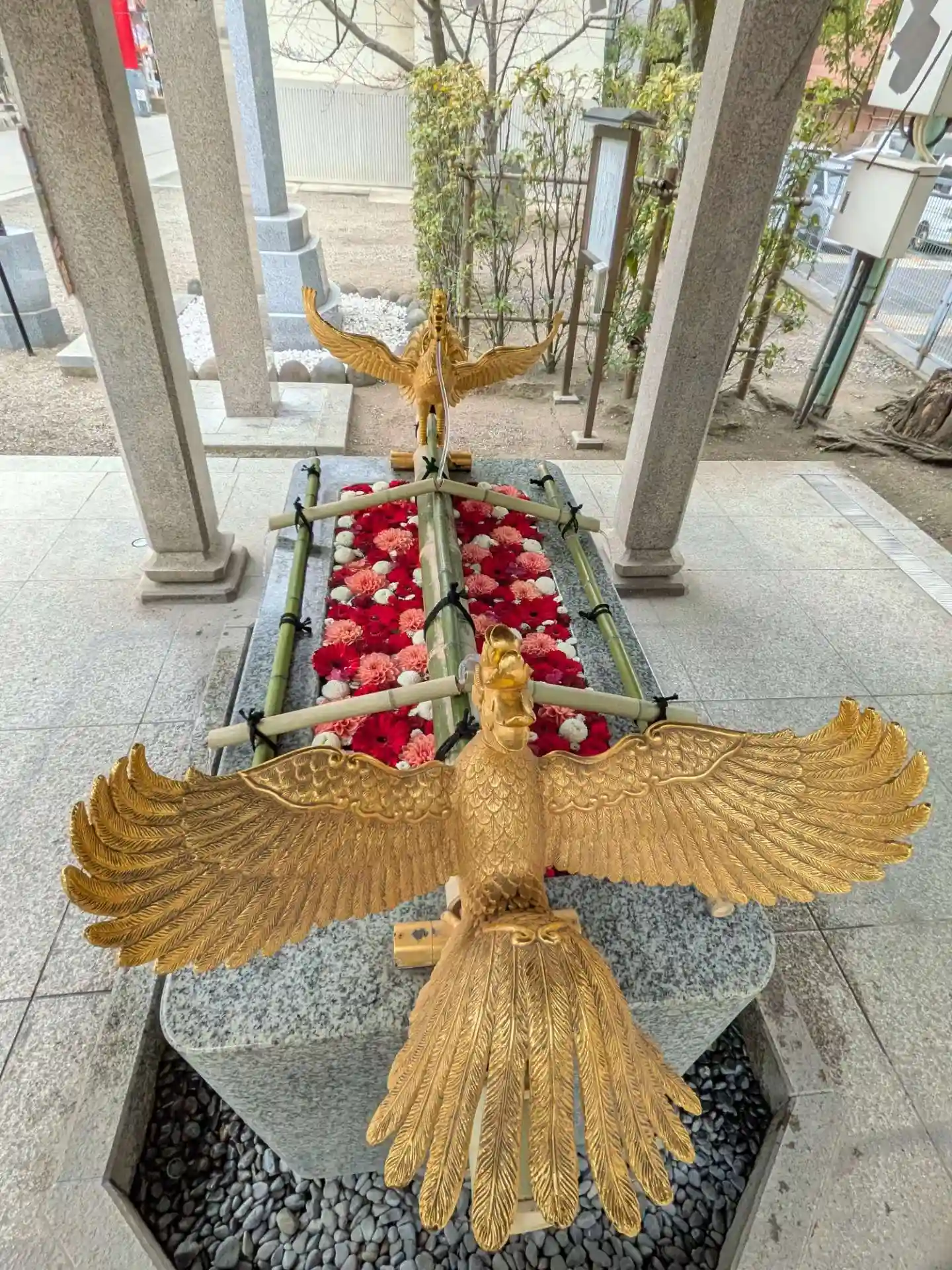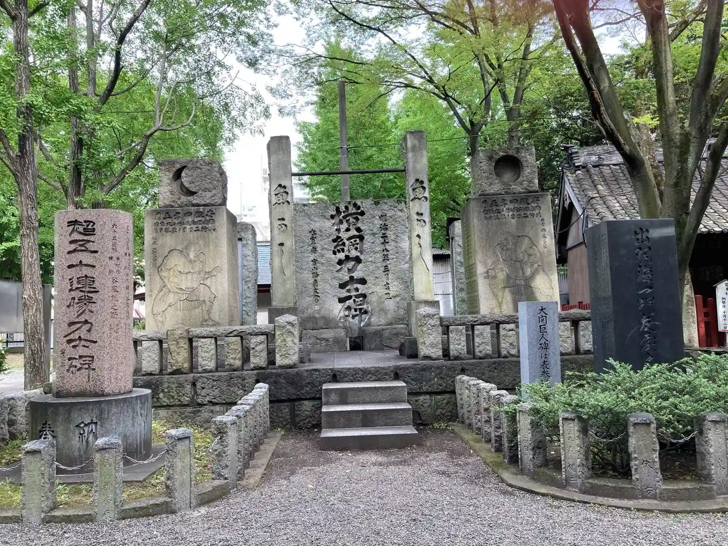 お相撲さんの碑には、歴代の横綱の名前が彫られていたり、豪華なお神輿がいくつも飾られていて圧巻でした。