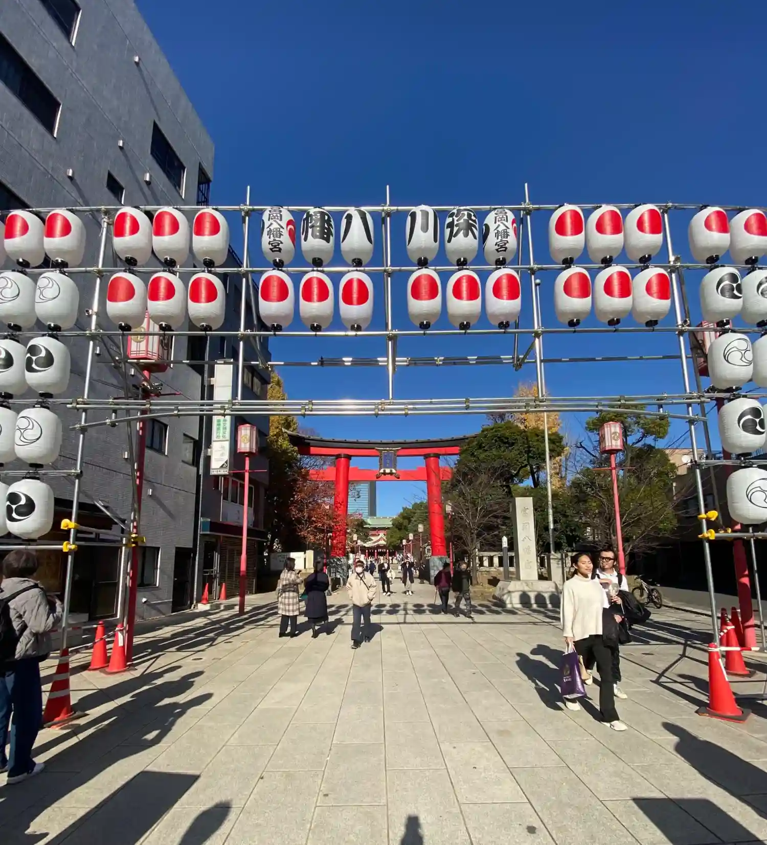 深川不動堂の門から見える位置に鎮座する、江戸最大の八幡さまです。