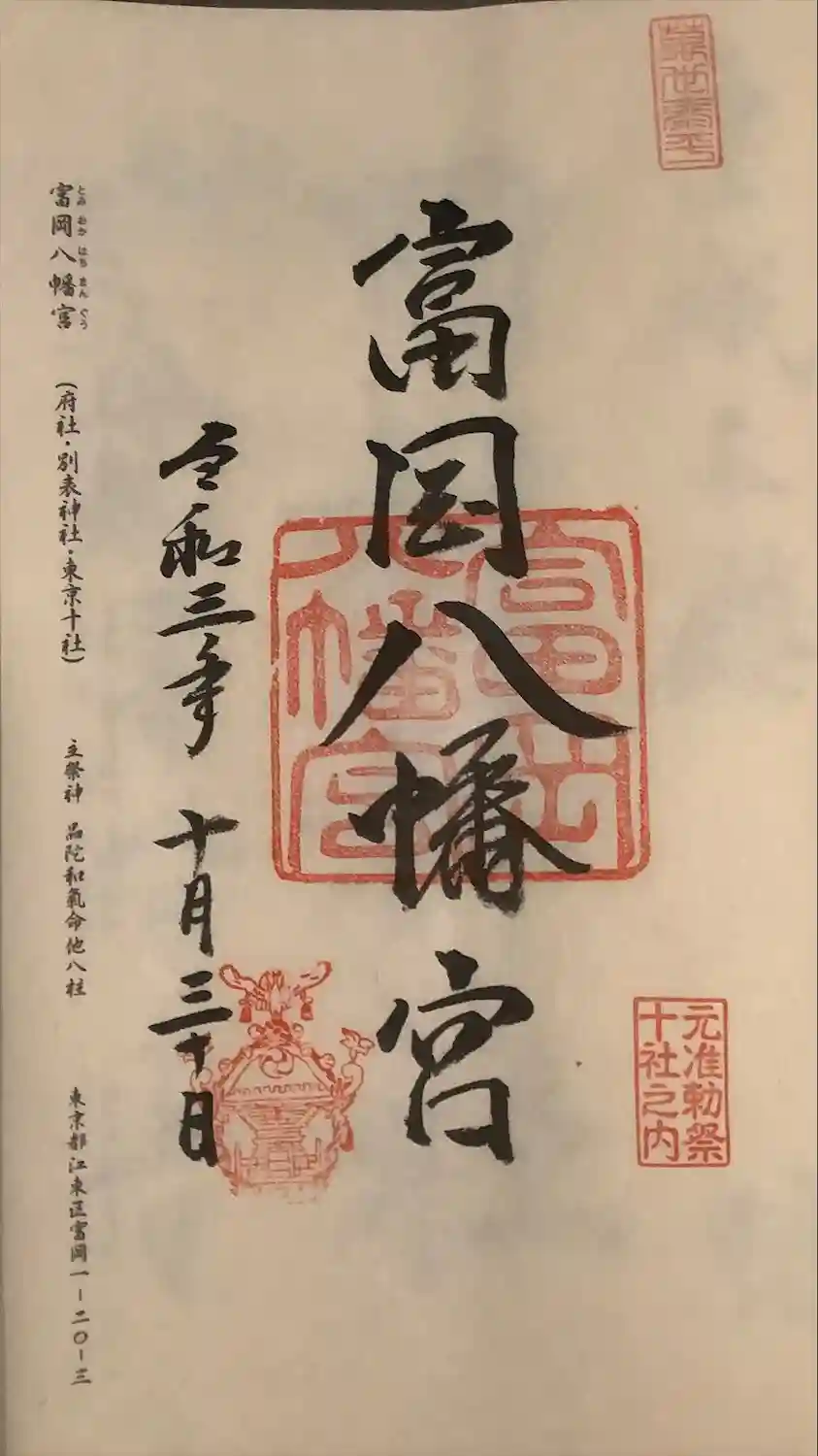富岡八幡宮の御朱印です