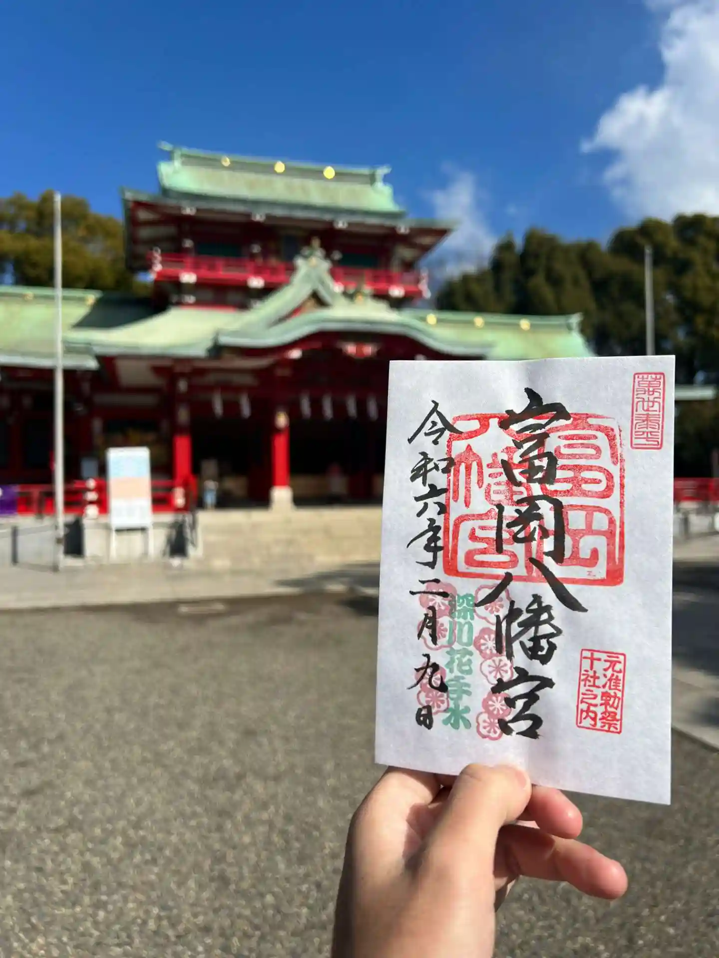 富岡八幡宮の御朱印を直書きでいただきました