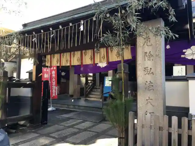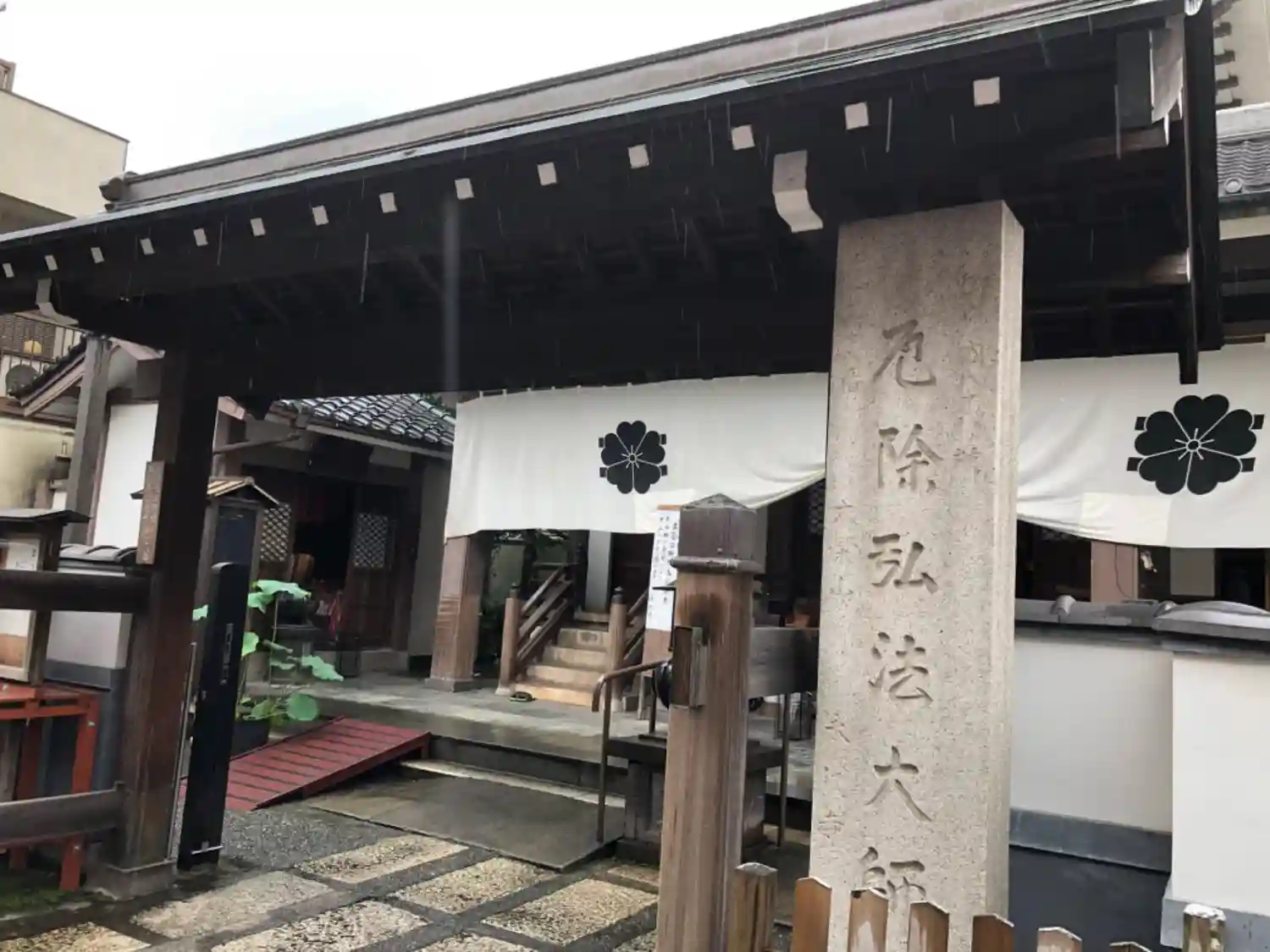 境内入口。石碑には<厄除弘法大師>とある。