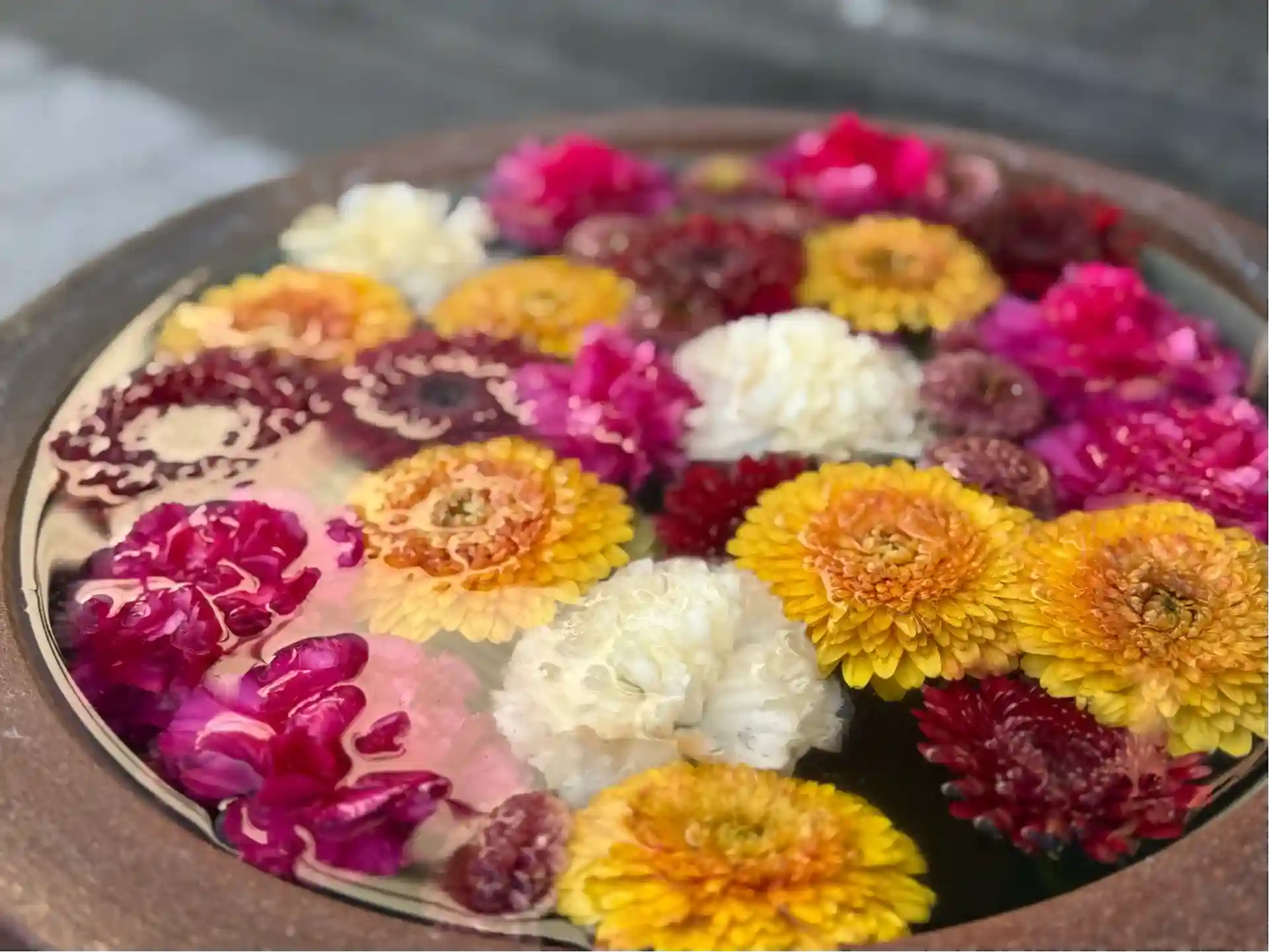 街全体で花手水をやっているので手水舎にも花が🌸