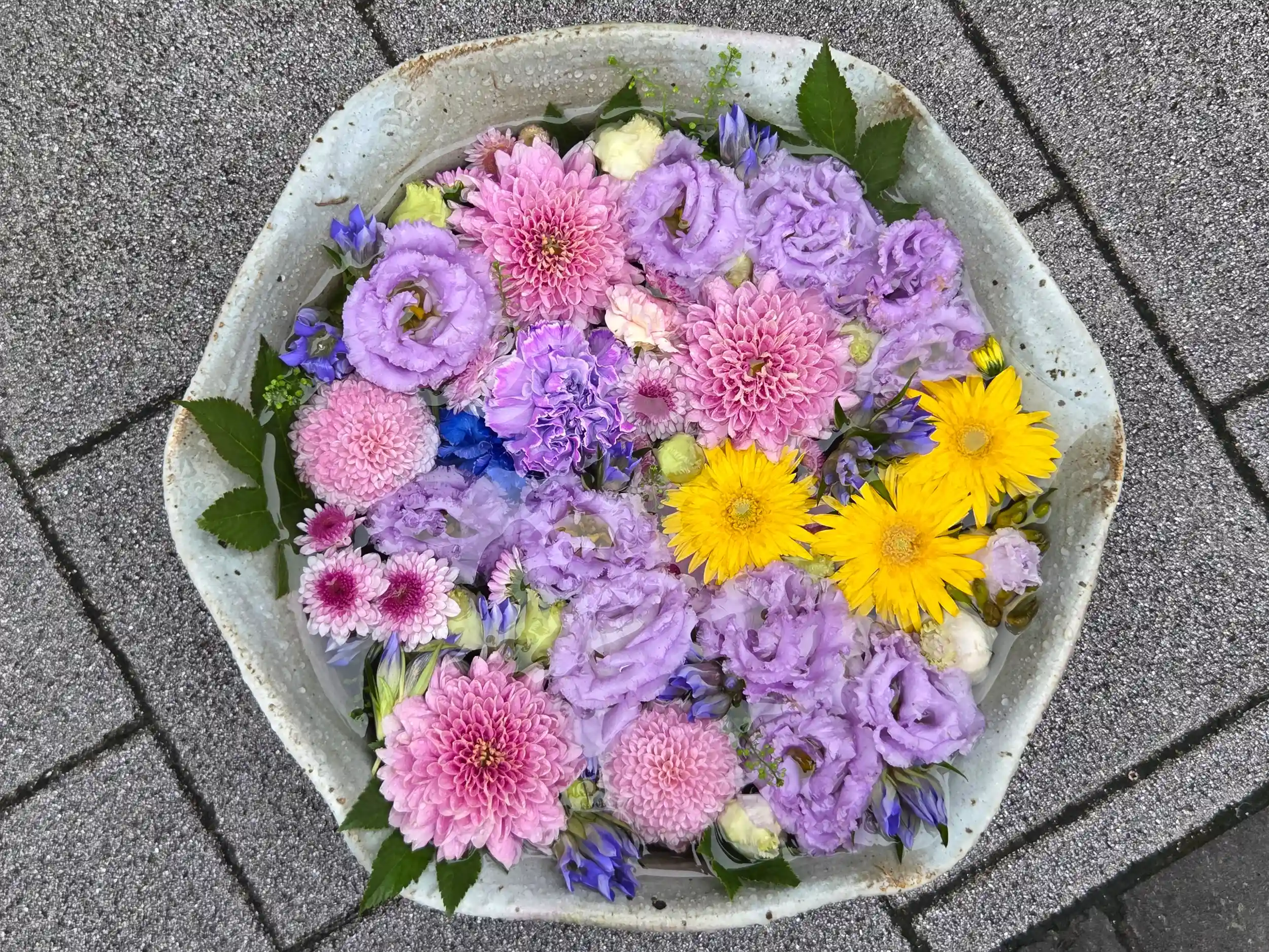 こちらでも「深川花手水2025」が行われており、参道を中心に多くの花手水が飾られていました。