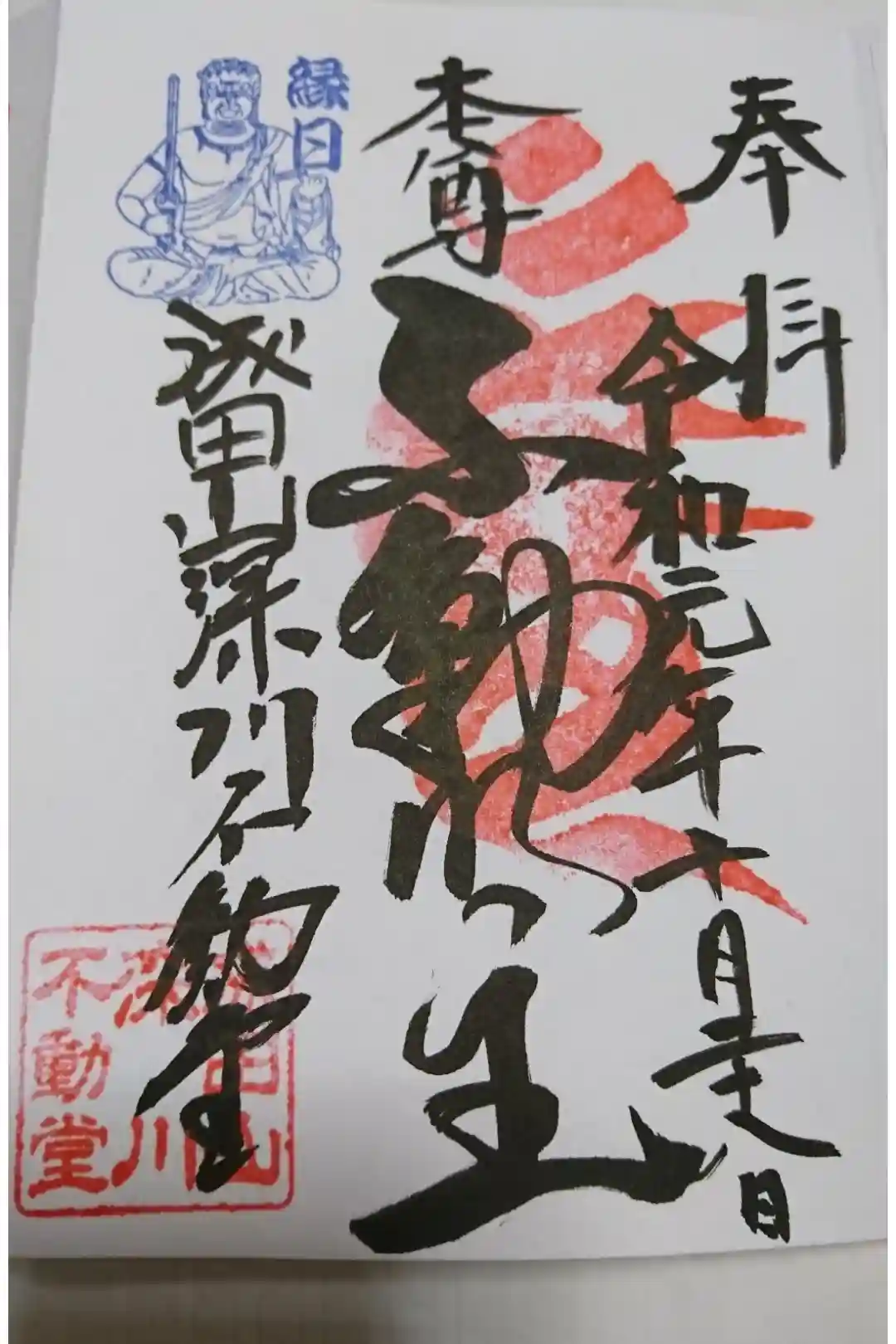 不動明王の梵字、「カンマン」の印が目を引く! | |||