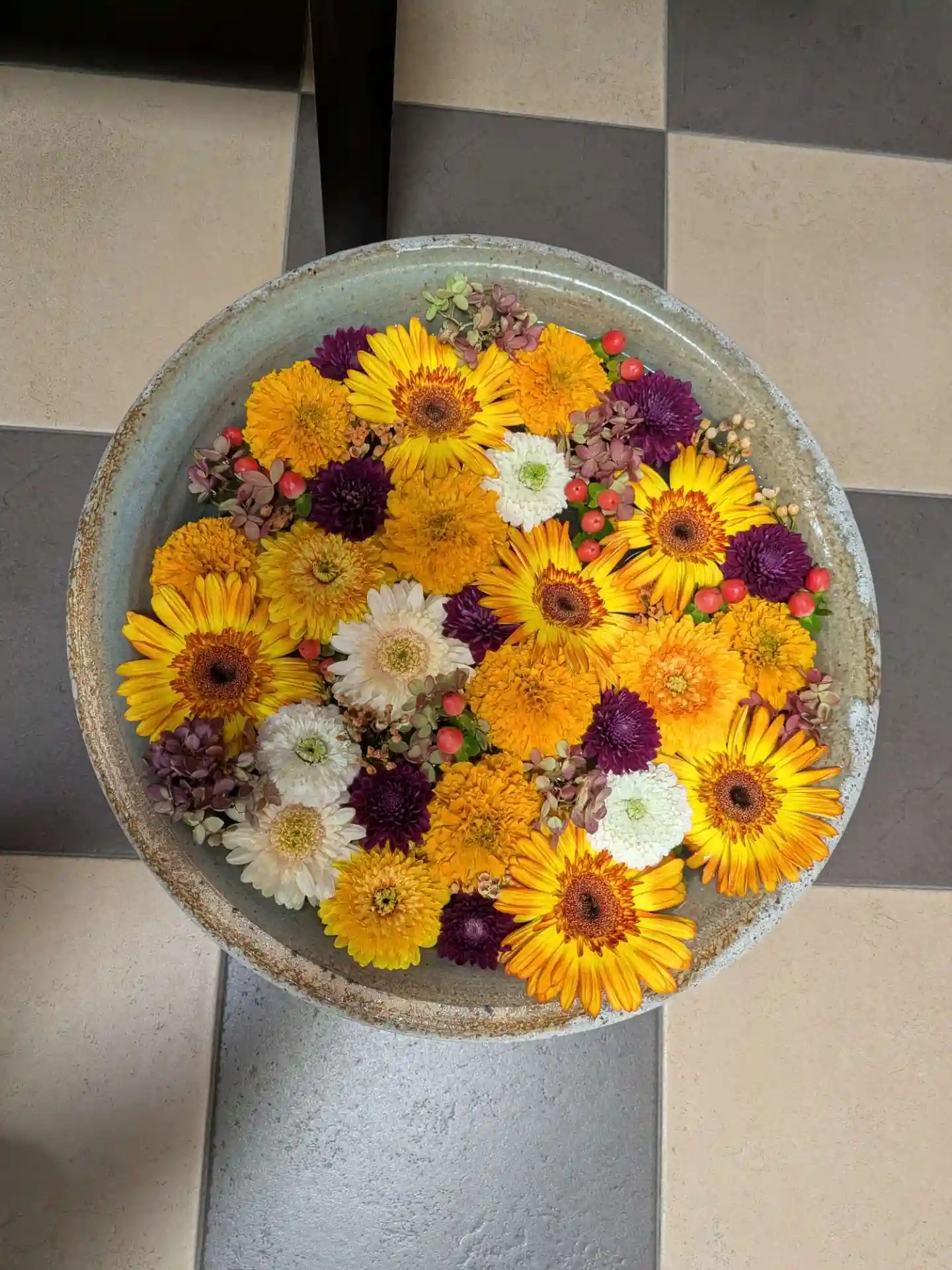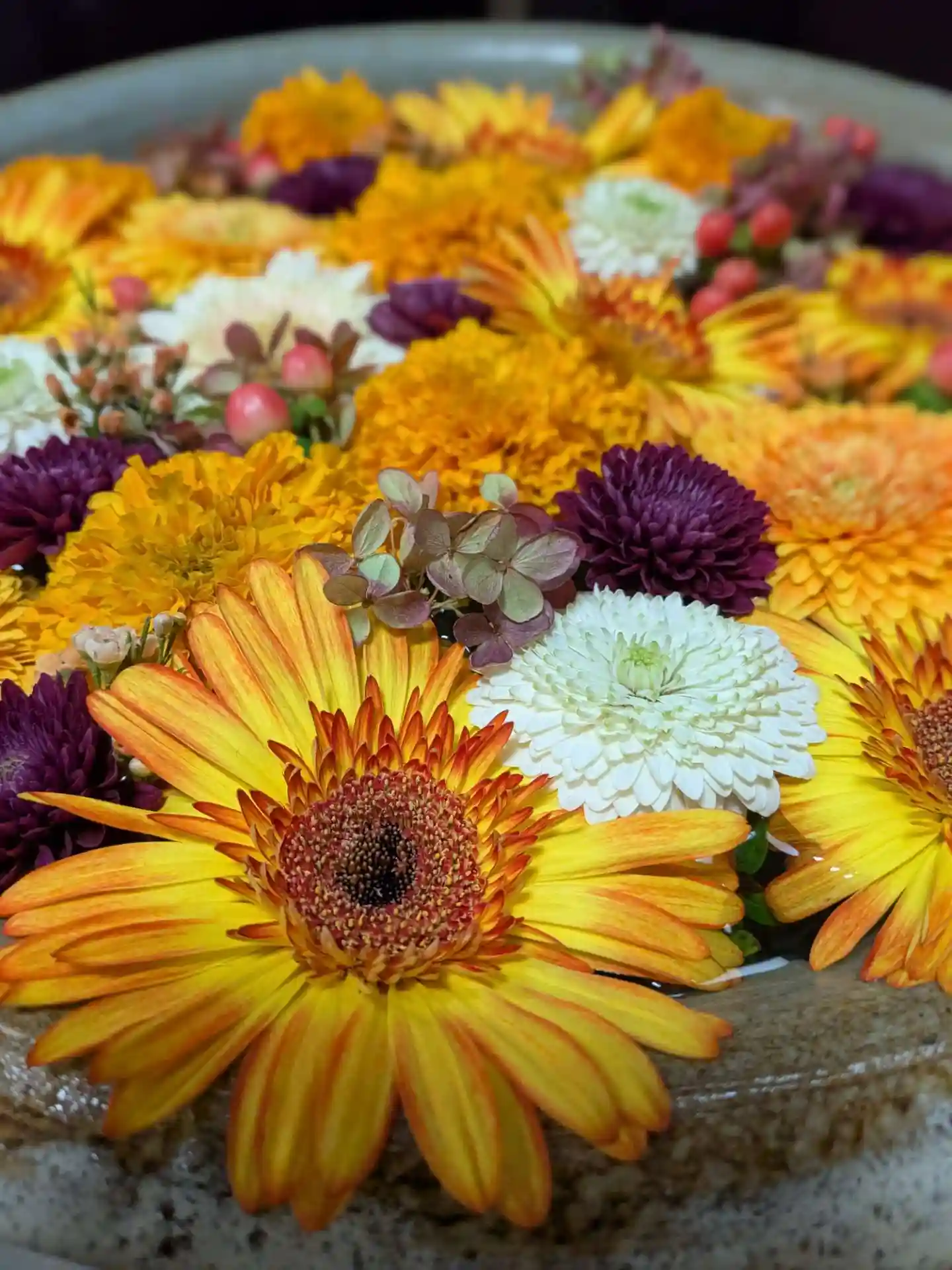 いくつかの展示花をご担当されていて、心行寺さんの花手水も、花やみつばちさん作です。